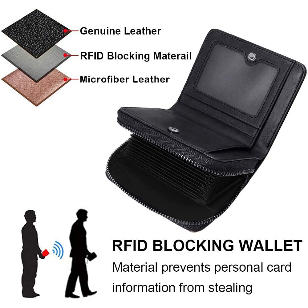 RFID engelleme cüzdanı ve etrafında Zip - HUANLANG çoklu kart düzenleyici cüzdanı, radyo frekansı tanımlama (RFID) sinyallerini engellemek, kredi kartlarında, banka kartlarında, kimlik lisansında ve diğer şeylerde bulunan RFID çiplerini taramayı durdurmak için tasarlanmıştır. cüzdanınızda taşıyorsunuz. Erkekler için gizlilik koruması sunar. -