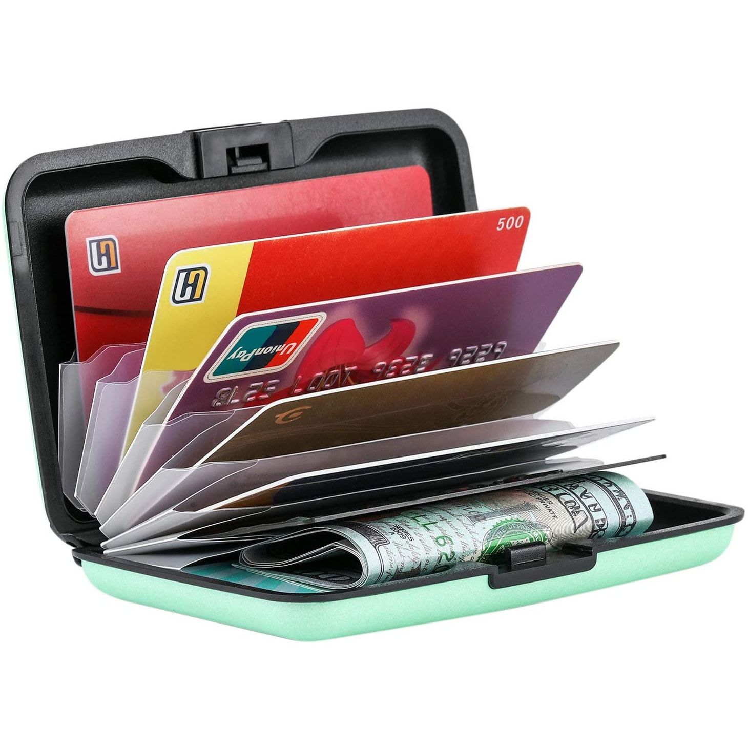 GÜNCELLENMİŞ ALÜMİNYUM CÜZDAN, yüksek kaliteli alüminyum malzemeler ve Çevre dostu plastik (ABS) toka ile kapatılır - Seyahat ederken HUZUR: Tatilde veya yurtdışına seyahat ederken bir koruyucu kılıf kimliği yuvalarına sahip olmalıdır. Toplu taşıma ve kalabalık yerlerde kullanım - endişeyi uzak tutun ve Banka Banka Kartı, Kimlik, ATM Kartlarınız her zaman korunsun. - EN GÜVENİLİR RFID ENGELLEME KORUMASI. Sert kabuklu aluma cüzdanlarını engelleyen çoğu RFID, 125KHz sinyallerini engelleyemez. Ancak Elfish metal kimlik durumları hem 13.56 MHz hem de 125KHz Sinyalleri Engelleyebilir. Hırsızlara hiç şans vermeyin. - AÇILIP KAPATMASI KOLAY. Kullanılmadığında güvenli ve emniyetli bir şekilde kilitlenir. Yuvarlatılmış köşe giysilerinize zarar vermez.