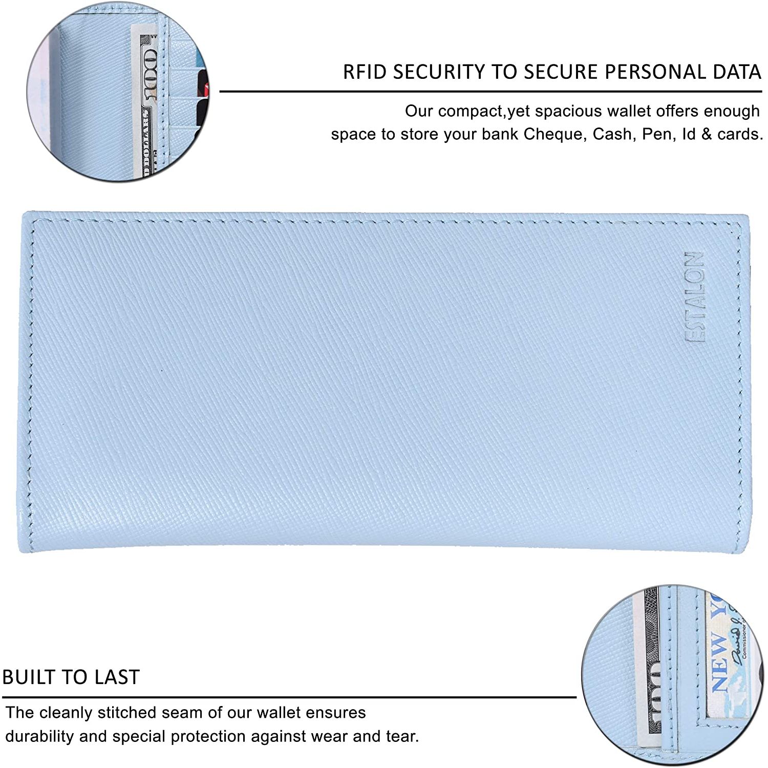 ESTALON Deri Çek Cüzdanı (Açık Mavi)