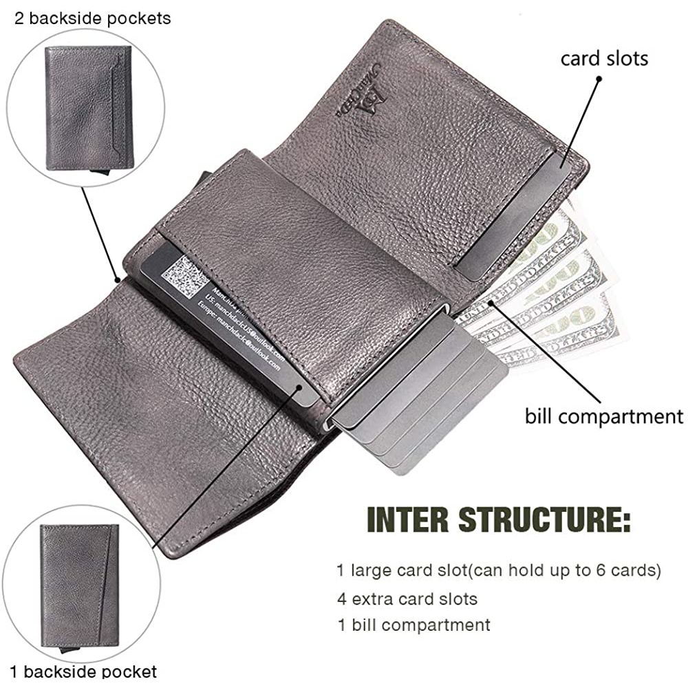deri - Manyetik kapatma - Paket içeriği: 1 deri üç katlı cüzdan + açılır kart çantası Buzdolabına adsorbe edilebilen güçlü manyetikli deri üç katlı para cüzdanı. ayrıca ÇIKARILABİLİR açılır alüminyum kart kasasını sıkıca tutabilir. dış üç katlı cüzdan En çok kullandığınız 3 kartı ve 10+ faturayı saklayabilir, içteki çıkarılabilir alumium açılır kart kutusu 5 kabartmalı kart tutabilir ve 1 kartı arka cebinde saklayabilir. 2'si 1 arada cüzdan ihtiyaçlarınıza göre uyarlanabilir.