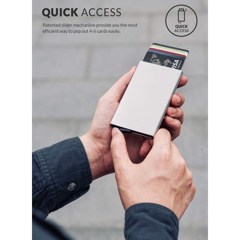 HIZLI ERİŞİM - Patentli kaydırma mekanizması, kartları kolayca açmanın en verimli yolunu sağlar - 5 KART TUTAR - 5 karta kadar tutacak şekilde tasarlanmıştır. Kaç tane kabartmalı olduğuna bağlı olarak. - RFID ve NFC ENGELLEME - Gelişmiş alüminyum teknolojisi, kartlarınızı istenmeyen kablosuz iletişimden korur - ULTRA SLIM & LIGHT - Cep boyutunda minimalist alüminyum cüzdan. Cebinizde bile hissetmeyeceğiniz kadar hafiftir.