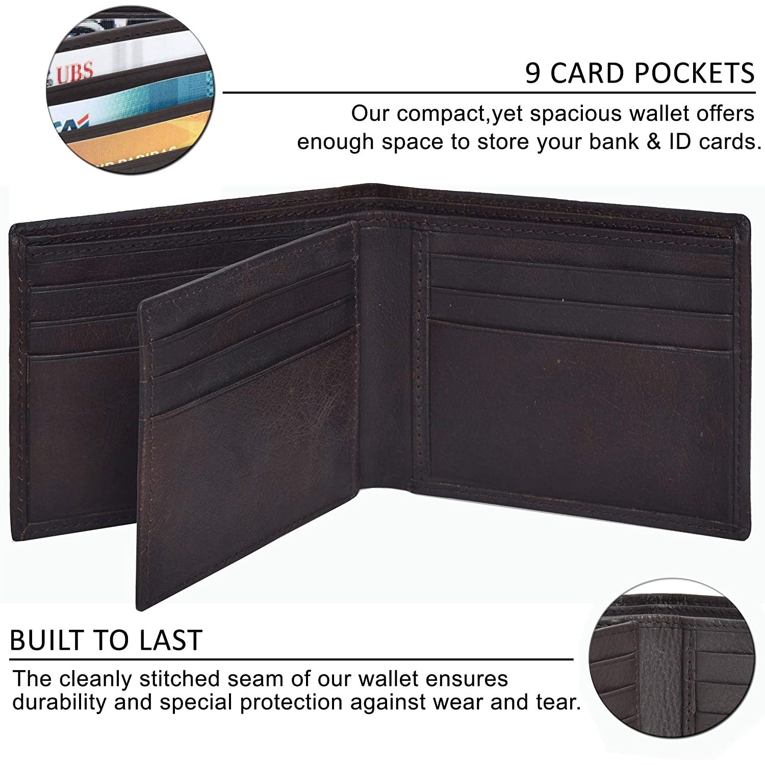 Deri - İki kat kapama - SAĞLANAN ZANAATKARLIK MÜKEMMELLİĞİ Bu iki katlı deri cüzdan, zengin ve birinci sınıf deri hissi ile gerçek bir minimalisttir. Cüzdan kişiliğinizle parlar ve uzun süre dayanan iyi bir arkadaştır. Bu bifold minimalist bir tasarıma sahiptir, ancak etkileyici bir kapasiteye sahiptir. 9 kredi kartı, 1 kimlik kartı sahibi, 2 para birimi faturası bölmesi ve 2 belge tutucusu ve yine de yalnızca 3,5 x 4,35 x 0,75 inç boyutlarında.