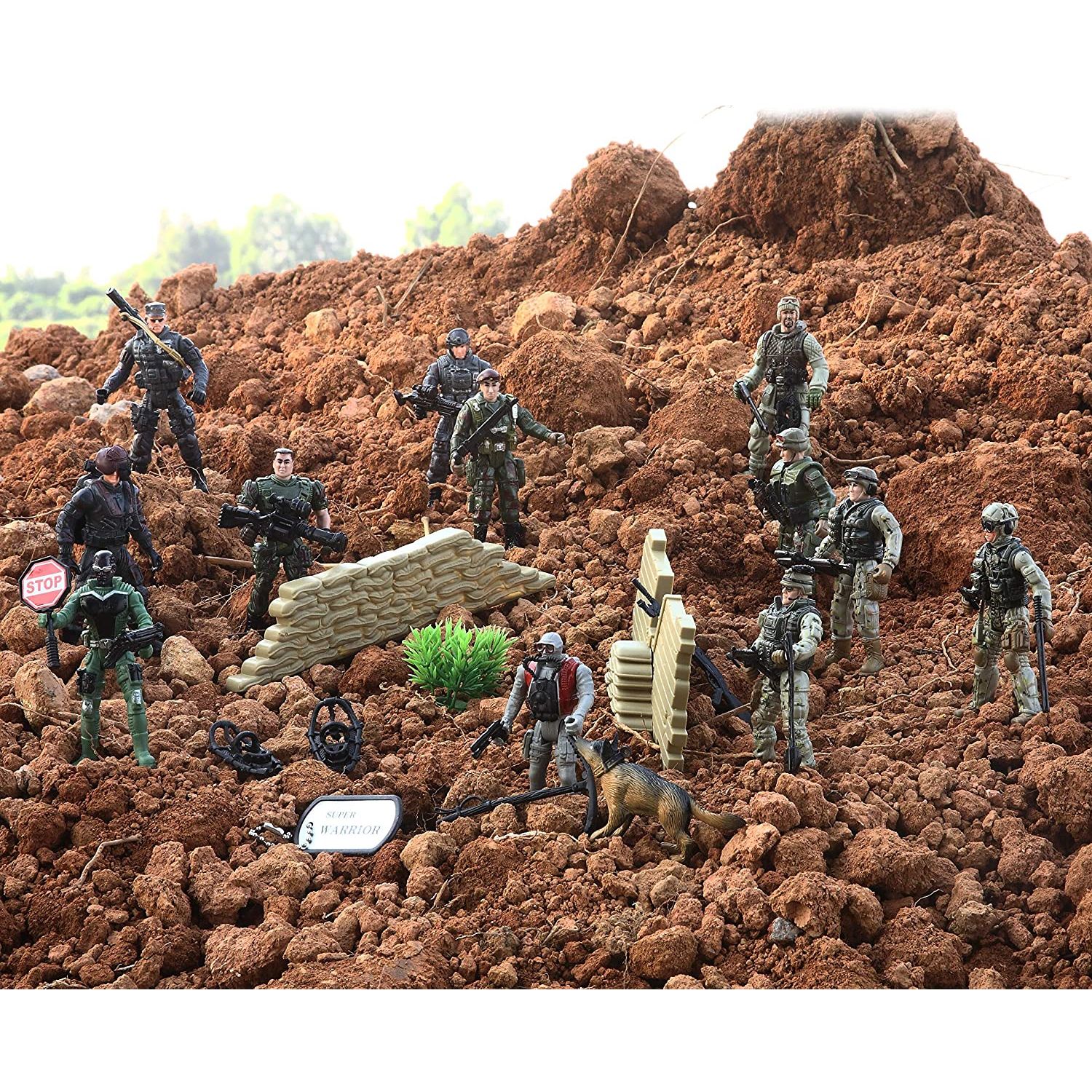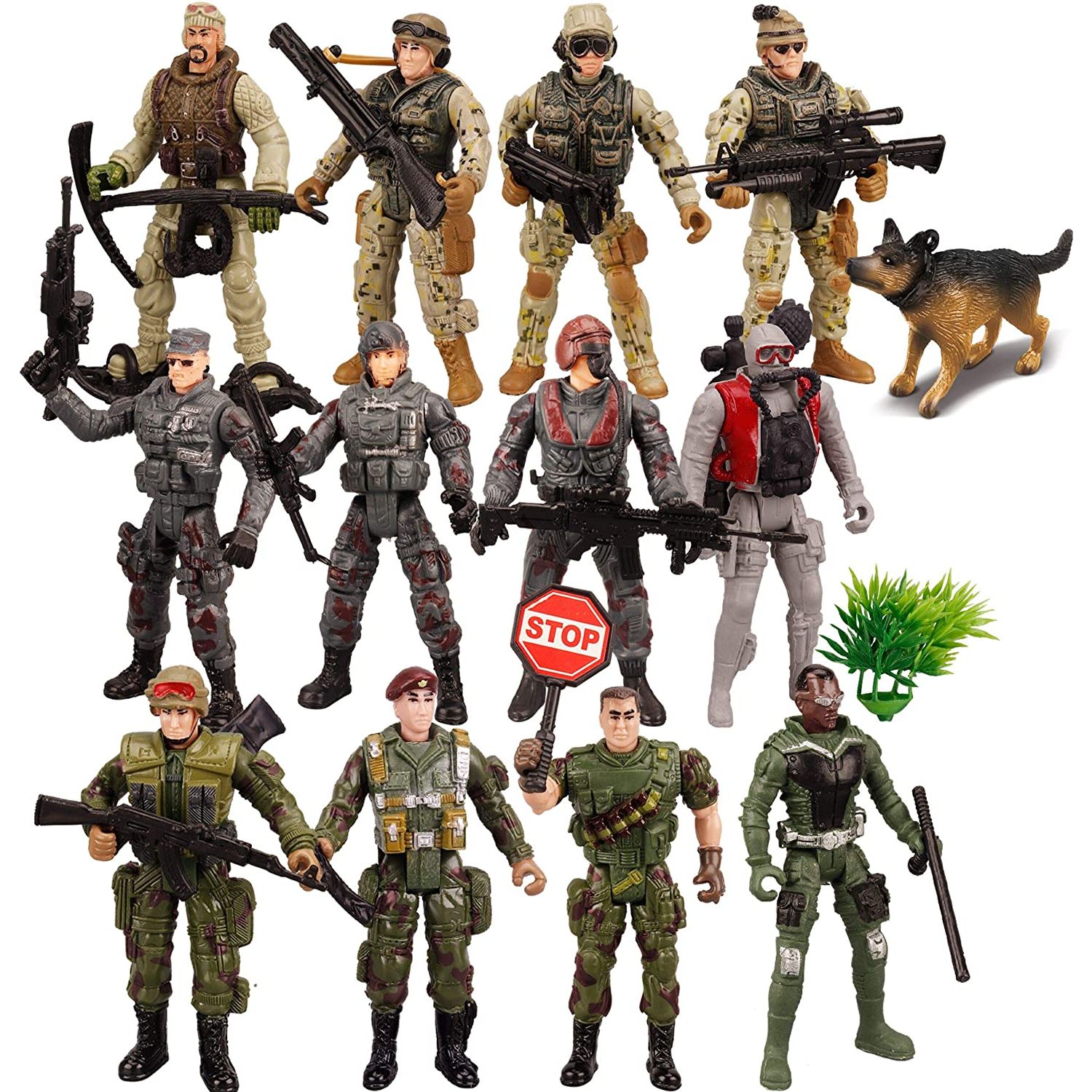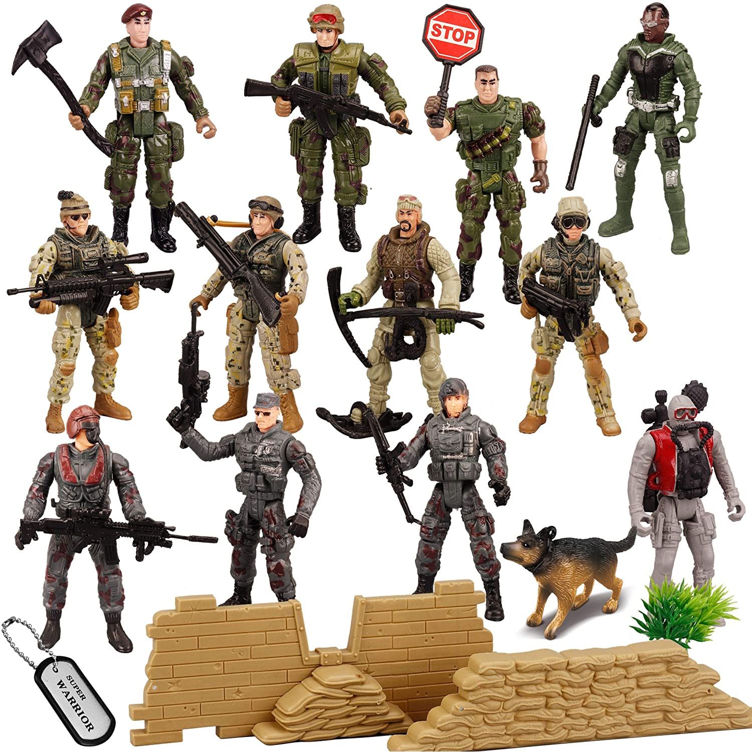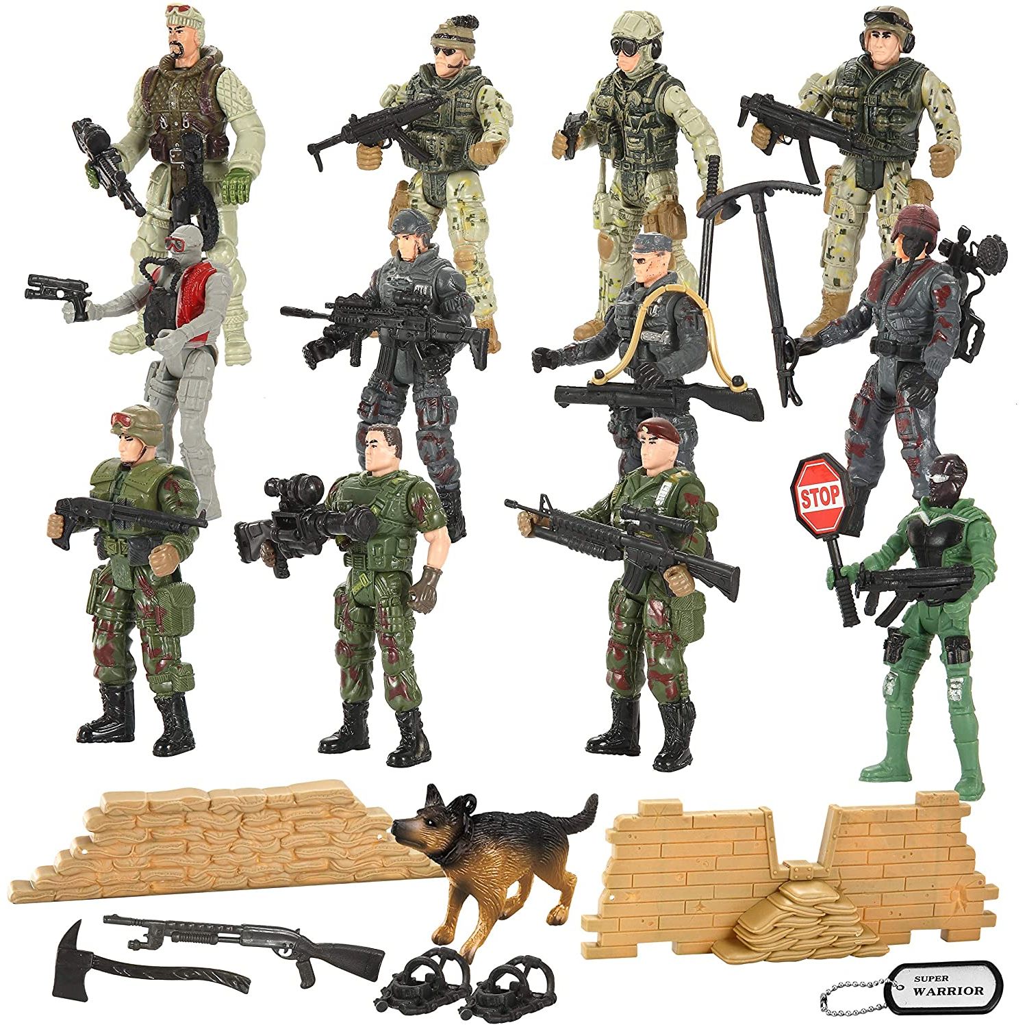 SÜPER DEĞER PAKETİ. Aksiyon figürlerimiz üç renk temasında 12 pakette geliyor: Ordu, Denizcilik ve Özel Polis, 2 tahkimat figürü, 1 köpek figürü ve 1 isim etiketi. Her erkek aksiyon figürü benzersiz bir gerçekçi tasarıma sahiptir. - GERÇEK FONKSİYON. On-kulübe! Bu küçük Ordu adamlarını sıraya dizseniz iyi olur yoksa onları indirip 20 şınav vermeniz gerekir! Onları dikkat çekmelerini sağlayın, destansı savaşlarda küçük çapta savaşın ve oyuncak odası boyunca stratejik manevralar yapın.