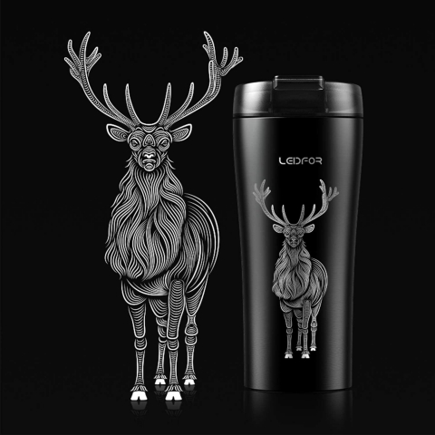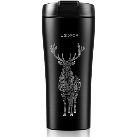 LEIDFOR Paslanmaz Çelik Termos (Siyah Elk)(480ml)