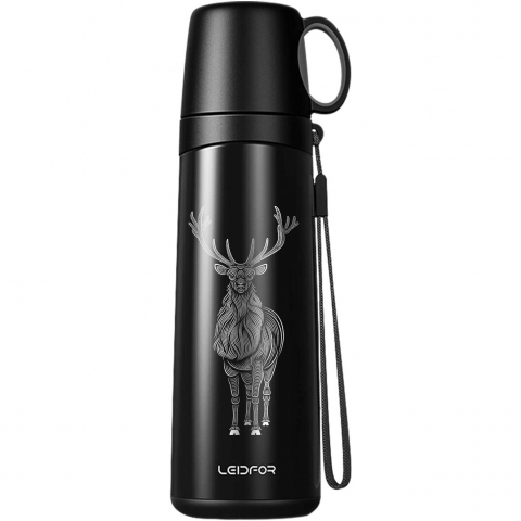 LEIDFOR Paslanmaz Çelik Termos (Siyah Elk)(500ml)