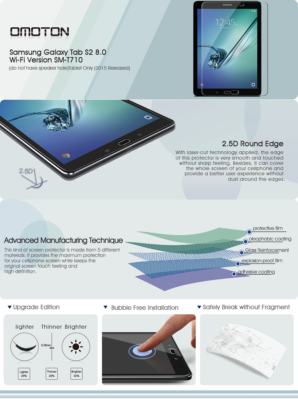 OMOTON Samsung Galaxy Tab S2 8.0 Temperli Cam Ekran Koruyucu ürünü Galaxy Tab S2 ile tam uyumludur.