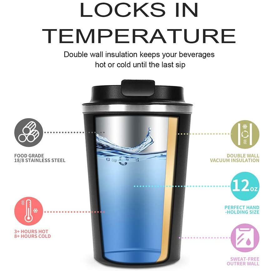 Çift cidarlı 18/8 paslanmaz çelik vakum yalıtımlı, seyahat kahve kupamız içeceklerinizi son yuduma kadar sıcak veya soğuk tutar - Dökülmeye karşı dayanıklı kapak, basit, güvenli ve kolay tek elle kullanımdır. Elde yıkama, toz kaplamayı ve yalıtım performansını korumayı önerir - Dar gövde tasarımı, tutup gitmeyi kolaylaştırır, ayrıca çoğu araba bardak tutucusuna ve kahve makinesine uyar - Paslanmaz çelik yalıtımlı bardağa, kaymayı önlemek için kaymaz bir altlık sağlayan silikon taban.