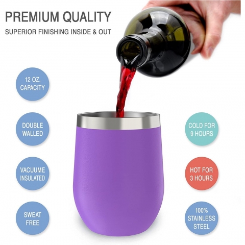 Su, şarap veya buz gibi soğuk kokteylinizle 9 saat boyunca veya 3 saatten fazla fok sıcak kahve ve çayınızla serinletici piknik, yürüyüş veya kamp maceralarınıza başlayın! Çıkarılabilir BPA içermeyen kapaklı, yalıtımlı paslanmaz çelik bir şarap kadehi, terletmeyen rahatlık için tasarlanmıştır! Bir şarap bardağı bardak olarak kullanın - Kırılmaz ve Ömür Boyu Kullanım İçin Üretildi! Doğaya zarar veren tek kullanımlık plastik bardaklardan veya kolayca kırılan cam bardaklardan uzak durun! Yeniden kullanılabilir, çevre dostu, kırılmaz yalıtımlı bir şarap kadehi ile kirliliğin azaltılmasına katkıda bulunun. Çift cidarlı izolasyonlu, kırılmaz 304 18/8 gıda sınıfı paslanmaz çelikten yapılmıştır.