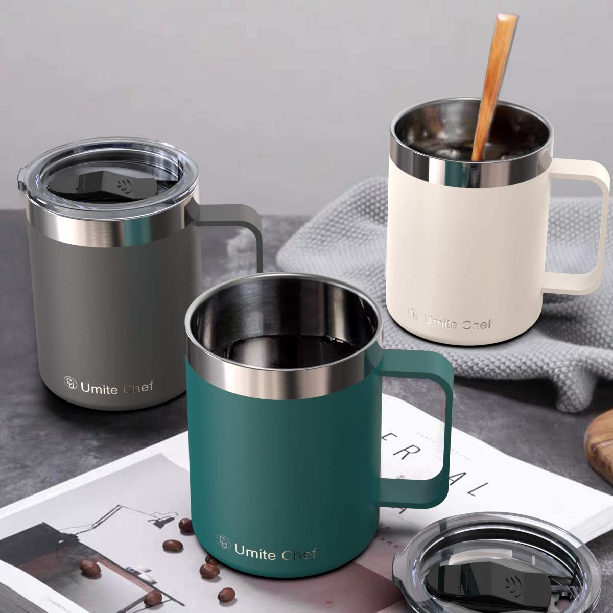 İZOLELİ PASLANMAZ ÇELİK: Umie Chef Coffee Mug, mükemmel sıcaklık önleme için Çift Duvarlı vakum teknolojisine sahiptir. Normal sıcaklık altında, ara sıcaklığınızı birkaç saat sıcak veya soğuk tutun. İyi sıcaklık tutma, önceden kalite ve modern tasarım, onu hayatınızın olmazsa olmaz bir aksesuarı haline getirir - BPA & PREMIUM PASLANMAZ ÇELİK: Yaygın kırılgan cam yerine 18/8 gıda sınıfı paslanmaz çelikten yapılmıştır, BPA içermez, Kurşunsuz, kolay yıkanabilir, diğer sıradan camlardan daha dayanıklıdır. Bardaklarınızın paslanmaz kalmasını sağlamak için içi elektro cilalı. Ter geçirmez, ne içersen iç, parmakların kuru kalmasını ve donmamasını sağlar. Çukurlara ve çizilmelere karşı diğer tasarımlardan daha üstün koruma.