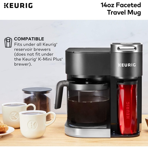 14 oz. kapasitesi (süt veya krema için yer ile) - Keurig için özel olarak tasarlanmış benzersiz, geometrik şekil - Vakumlu, çift cidarlı paslanmaz çelik yapı - Hava geçirmez, sızdırmaz kapak - Tüm Keurig hazneli kahve makinelerine uyar - Bulaşık makinesinde yıkanabilir kapak ; sadece el yıkama vücut