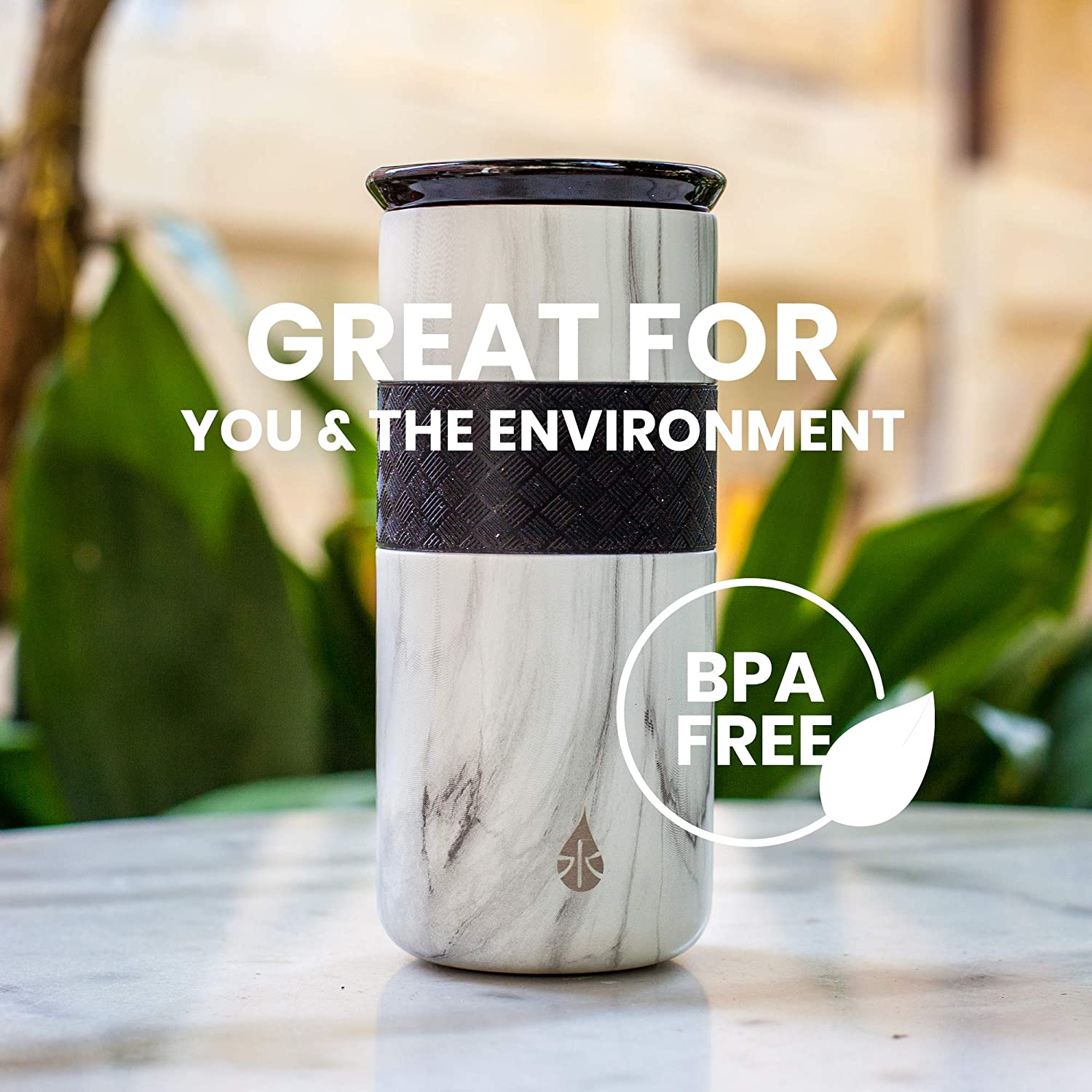 SAATLER BOYUNCA SICAK VEYA SOĞUK İÇECEKLERİ SAKLAYIN - Kahve, çay veya smoothie'ler için vakumlu bardak makinemiz, çift cidarlı tamburdan bir yükseltme olan üçlü duvarlı bakır yalıtıma sahiptir. İçeceklerinizi 6 saate kadar sıcak, 18 saate kadar soğuk tutar. - KOLAY DÖKÜLMEYEN TUMBLER - Kalın kenarlı seramik kapaklı metal bardağımız, hareket halindeyken en sevdiğiniz kahve kupasından evde içmenin rahatlatıcı hissini sunar. Silikon tapa, dökülmeye karşı dayanıklı bir sızdırmazlık oluşturmak için açıklığa tam olarak oturur. - KARARLI VE KONFORLU TUTUŞ SAĞLAR - Vakum yalıtımlı bardağınızı kolaylıkla taşıyın. 3 inç çapında, tutması kolay bir boyuta sahiptir ve standart bardak tutuculara sığar. Güvenli bir tutuş için dokulu bir banda da sahiptir.