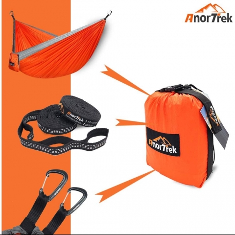 AnorTrek Taşınabilir Hafif Çift Kişilik Hamak (Turuncu/Gri)