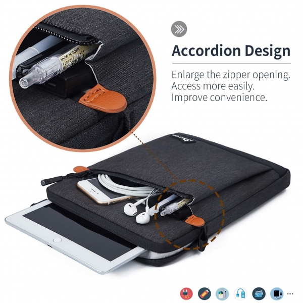 Yüksek kaliteli YKK fermuarları sorunsuz bir şekilde açılır ve tabletinize kolay erişim sağlar.