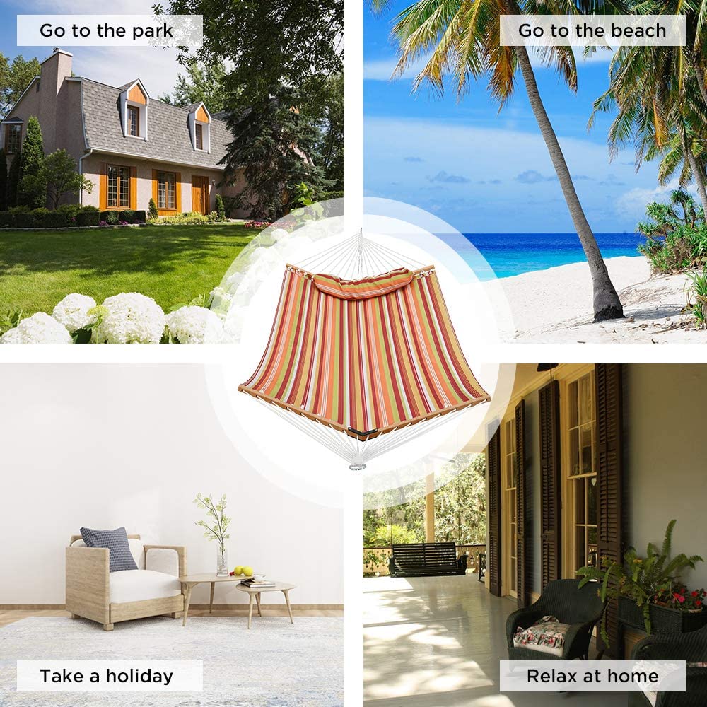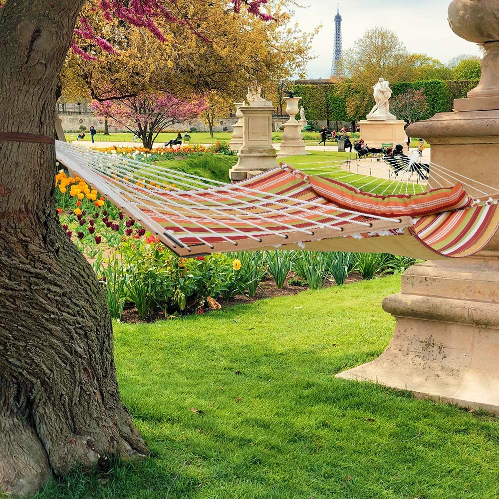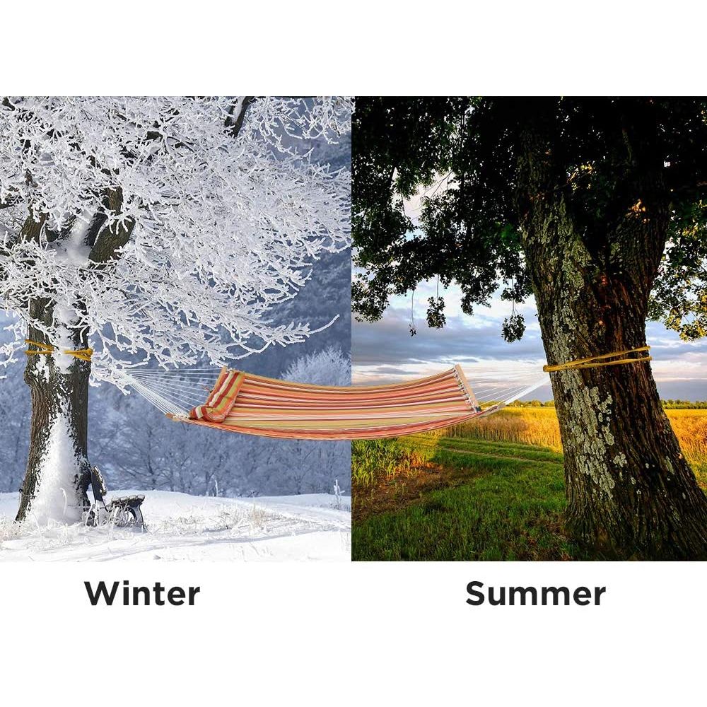 Tasarım Yükseltmesi: Piyasadaki hamakların çoğunun hamak tarafından tamamen sarılmanıza izin verebileceğini göz önünde bulundurarak, destek çubuğunu yükselttik.Yeni V şeklindeki kavisli destek çubuğu, hamakı mükemmel şekilde esnetip güzel bir yay oluşturarak size rahat bir hamakta yatarken içiniz rahat olsun. - Büyük Boy: