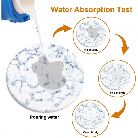 Güçlü Su Beyaz mermer tarzı bardak altlığı seti, kumtaşı ve Silikon bardaklara göre daha emici özel emici seramik taştan yapılmıştır. Suyu veya içecek lekelerini daha çabuk emebilir ve masayı kuru ve temiz tutabilir. - Kaymaz Mantar Sırt Her dekoratif içecek altlığı, mobilya üstlerini korumak için kaymaz mantar destek ile kaplanmıştır. Porselenin masa üstlerini çizmesini önlemeye yardımcı olur ve kaymaz bir yüzey sağlar, böylece masadan kaymaları konusunda endişelenmenize gerek kalmaz.