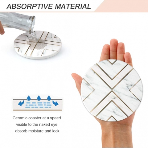 GÜÇLÜ SU - Bu geometrik tasarımlı bardak altlığı seti, kum taşından daha iyi çalışan seramik taştan yapılmıştır. Suyu veya içecek lekelerini daha çabuk emebilir ve masayı kuru ve temiz tutabilir. - MASANIZI KORUYUN Bu sevimli bardak altlıklarındaki geometrik tasarımlı seramik üst, buz gibi soğuk içeceklerden nemi yakalamaya yardımcı olur ve yüzeyleri sıcak kahve fincanlarından korur, kumtaşı bardak altlıklarından daha emicidir. - ANTI MANTAR TABAN - Altlıkların arkası, masanın aşınmasını ve çizilmesini önlemek için mantardır ve