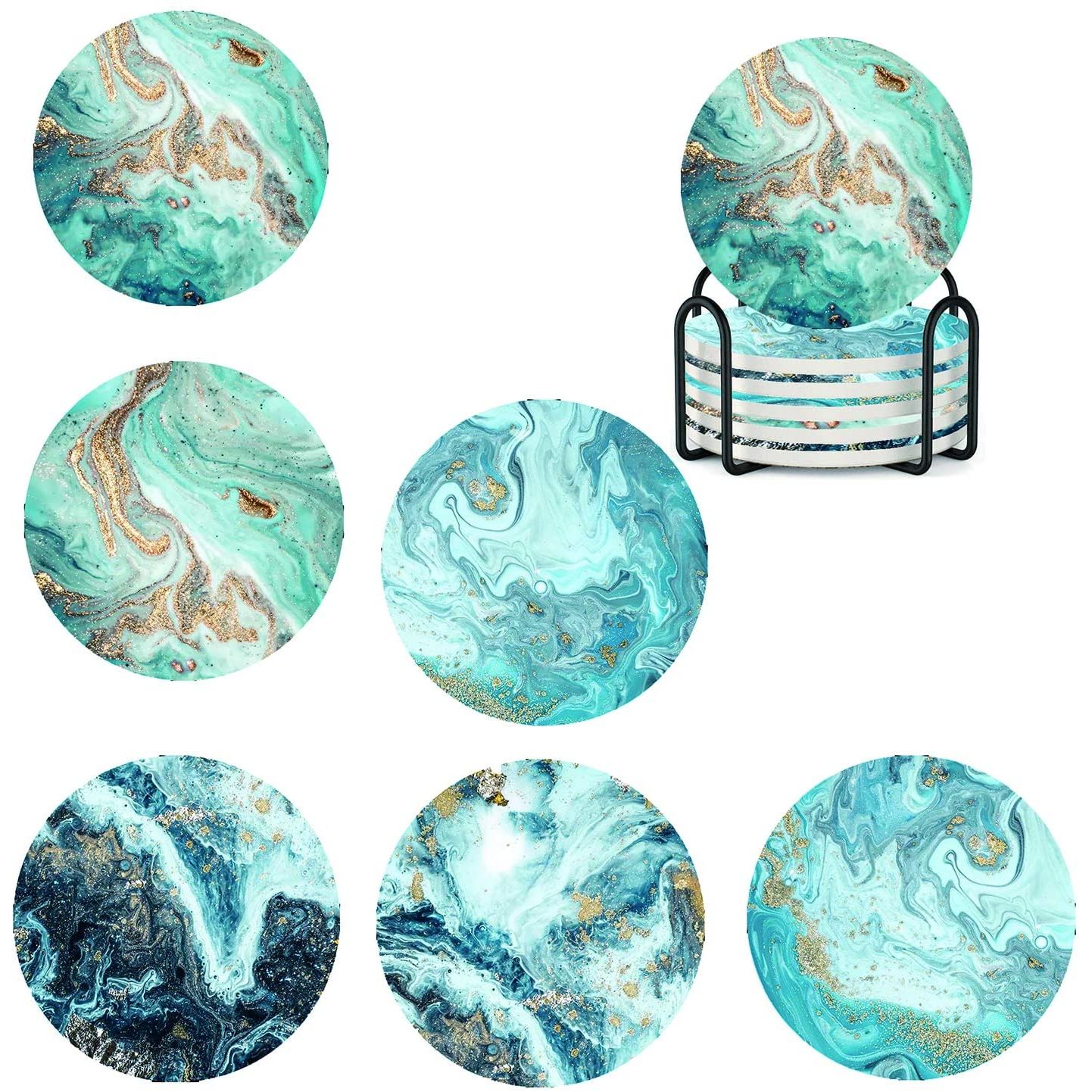 Kuru ve temiz bardak altlıkları tutun - Kaymaz, çizilmeye ve haşlanmaya dayanıklı silikon bardakların çoğuyla karşılaştırıldığında, bu güçlü emici içecek bardak altlıkları, seramik malzemeler, ancak aynı zamanda ahşap masayı kuru ve temiz tutmak için yağları emebilir. - Çok sahneli yerleştirme - Bu içecek bardak altlıkları, mutfak, oturma odası, yatak odası, okuma odası vb. Çoğu ahşap masa için uygundur. - Enfes sanat eseri - Plaj deseni, mermer şerit, deniz mavisi rengi, doğayı seven zanaatkarlardan ilham alıyor, size sakin ve havalı bir görünüm veriyor.