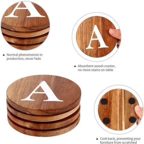 D&PY Natural Ahşap 4 Adet R Harfli Bardak Altlığı