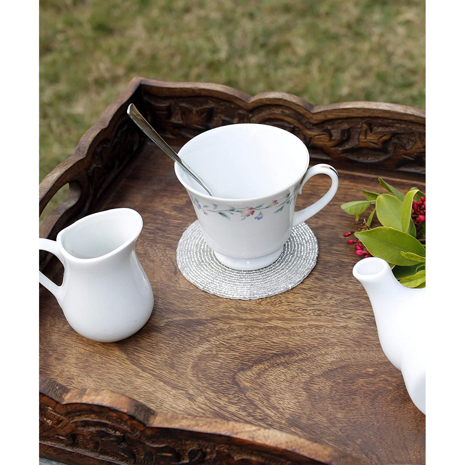 COTTON CRAFT Boncuklu 8 Adet Bardak Altlığı Set (Gümüş)