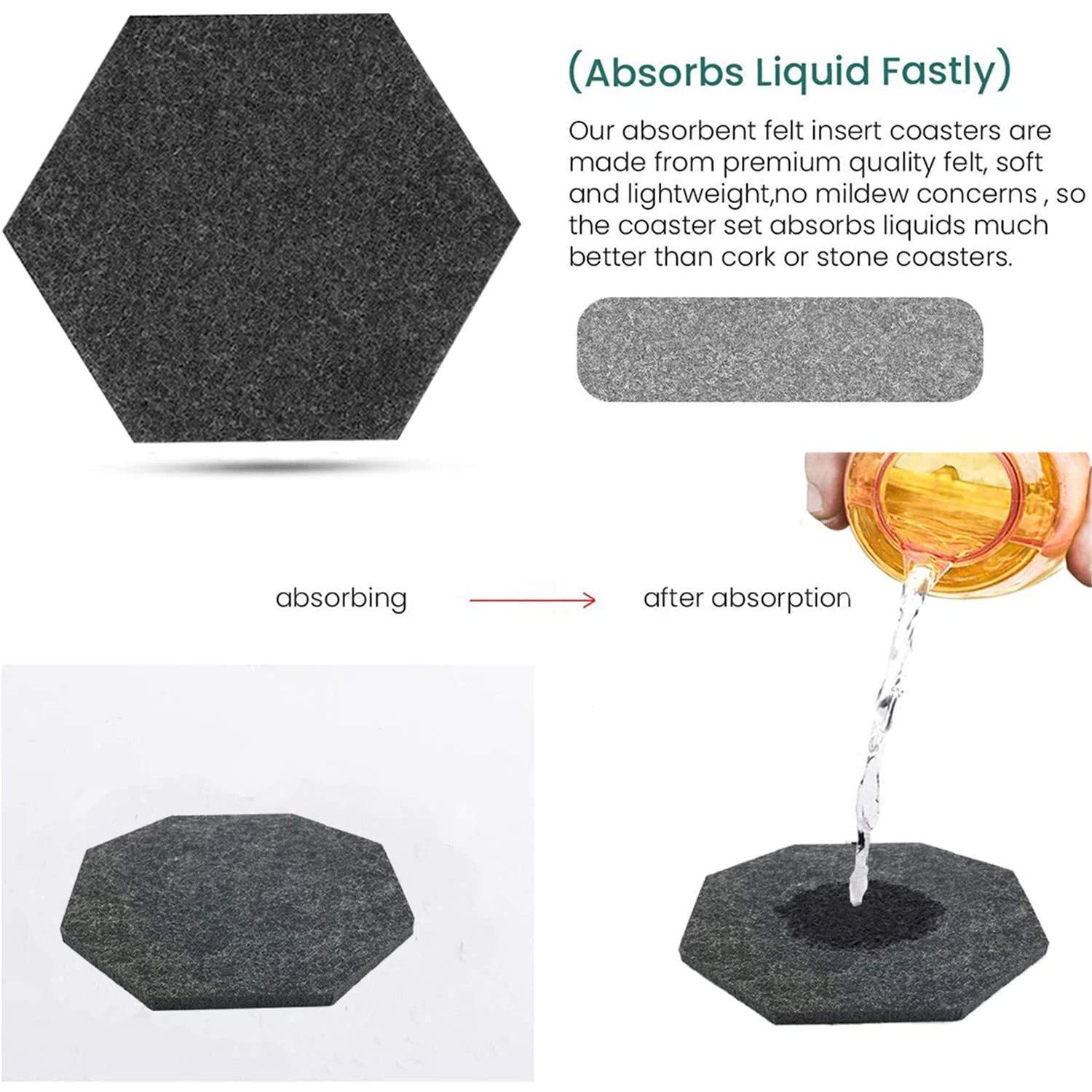 MALZEME: Gerçek keçe kullanılarak yapılmıştır, kokusuz, çevreci. Bu bardak altlıkları içeceklerinizi dinlendirmek için yumuşak bir yüzey sağlar. Kullandığımız keçe dayanıklı olacak ve yıllarca kullanıma dayanacak şekilde tasarlanmıştır. Mobilyalarınızı sudan, şaraptan, kahveden, biradan, diğer içeceklerden zarif bir şekilde koruyun! - ŞIK TASARIM: Modern bir keçe tutucuda saklanan 10 altıgen yuvarlak kare bardak, her evde harika görünüyor. 4 inç boyutunda. 0.2 inç kalınlığında, güçlü kapasitesi.
