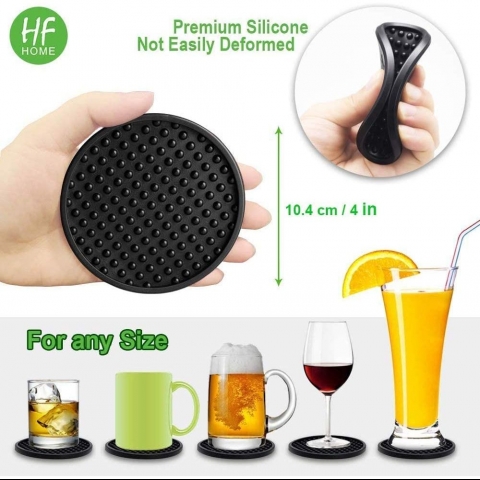 HFHOME Silikon Bardak Altlığı Set (6 Parça)(Siyah)