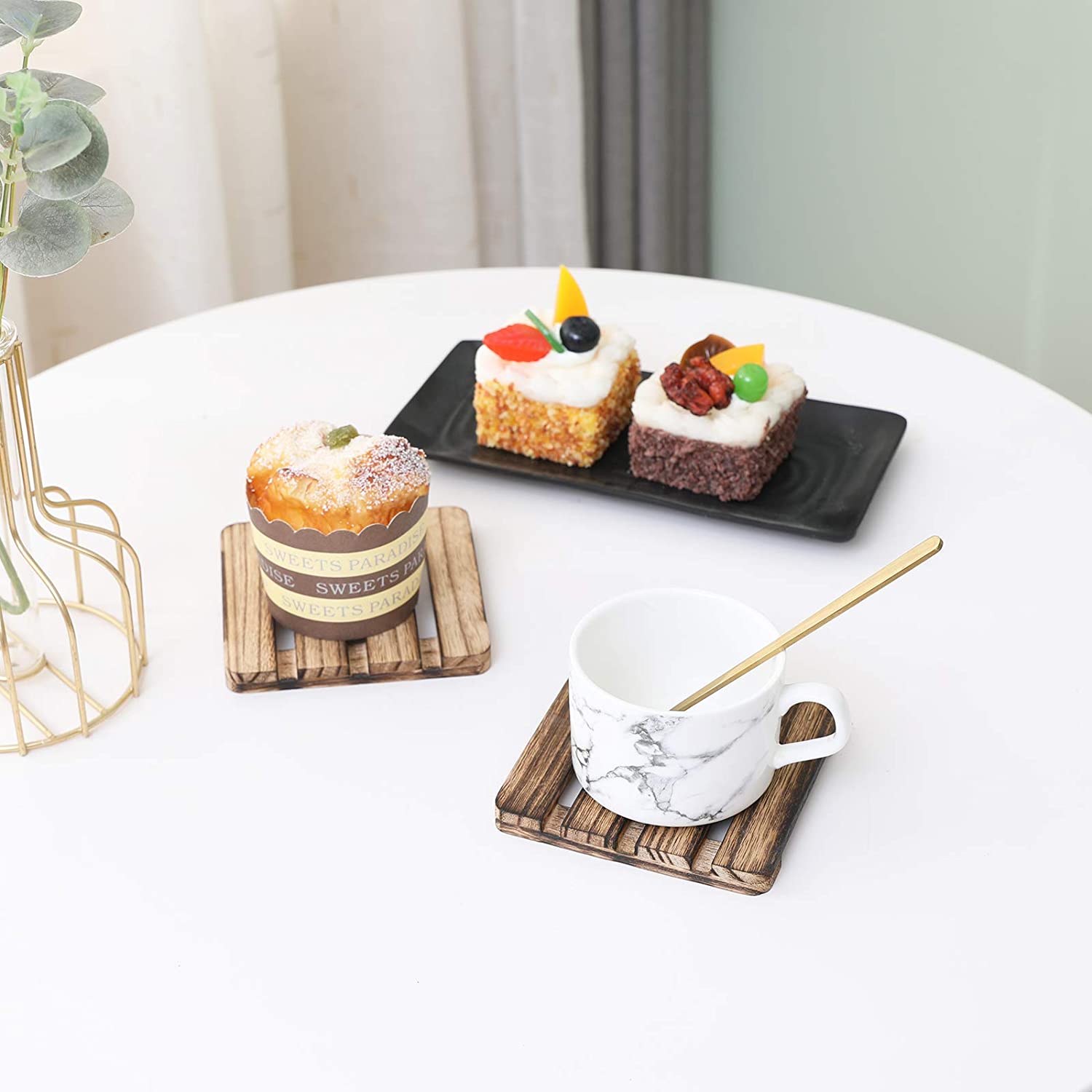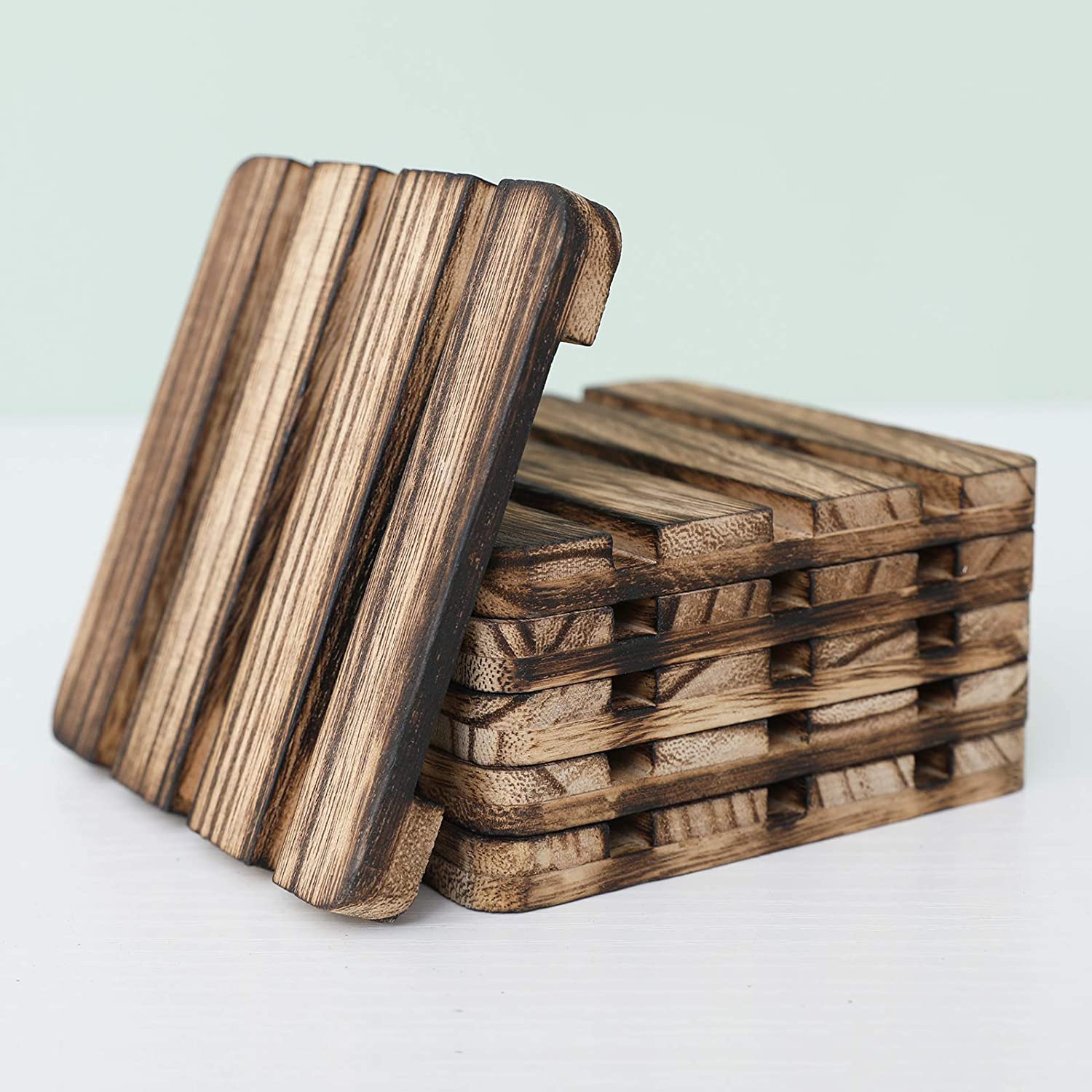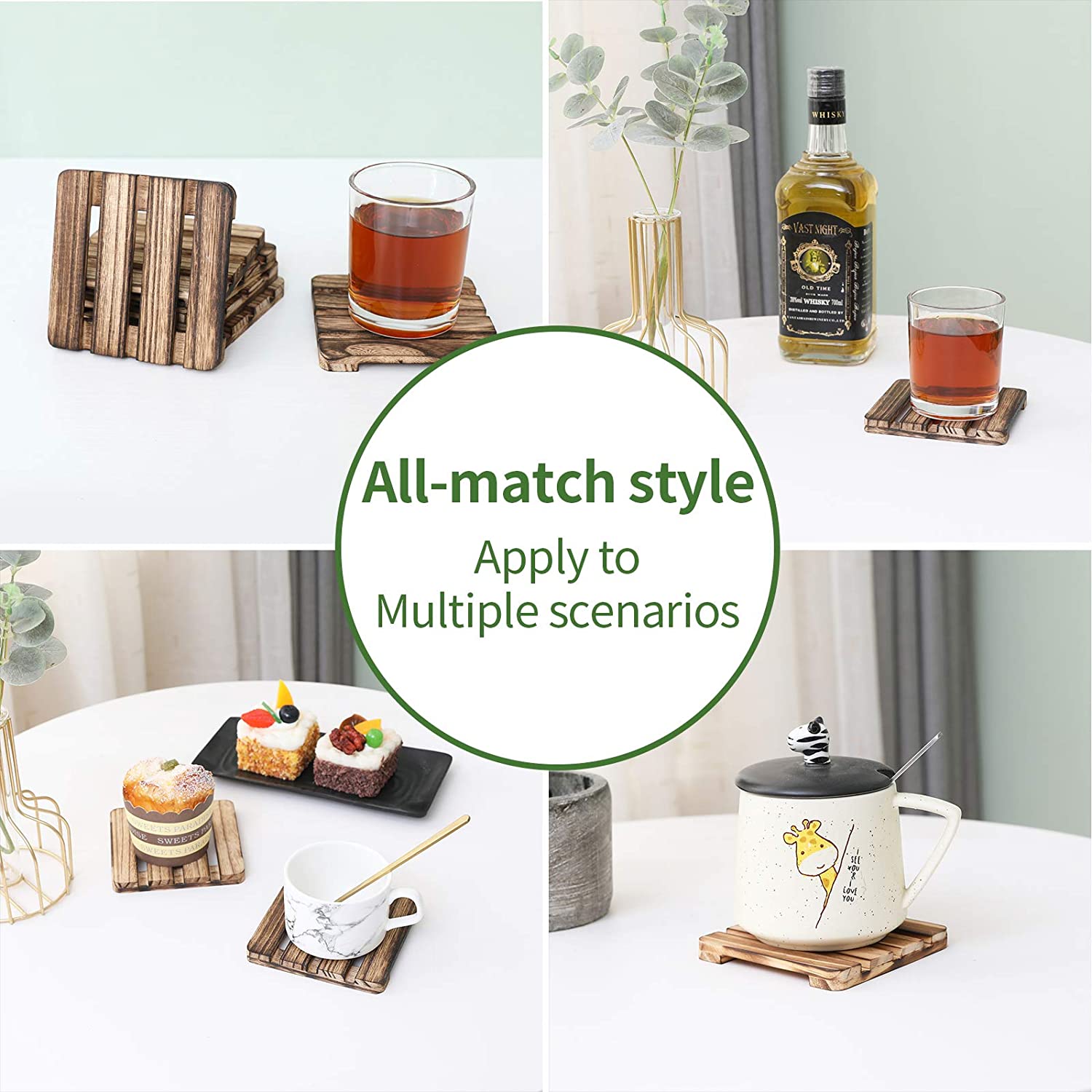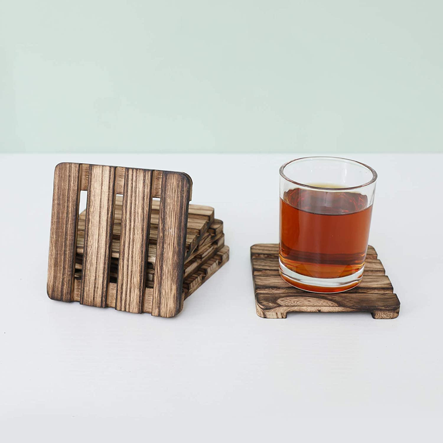 Her palet 4,1 "x 4,1" x 0,4 "boyutlarındadır - Bakım: Yalnızca elde yıkayın ve kurutun. Bulaşık makinesinde, mikrodalga veya fırında güvenli değil - İçecekler için Dörtlü Kare Ahşap Bardak Altlığı: burbon viski bardağı, kahve fincanı gibi her tür bardağa uygundur. Bardaklar, mataralar, Mason kavanozlar ve büyük çeşmeli içecekler. - MOBİLYALARINIZI KORUYUN: Bu ahşap bardak altlığı, masayı, tezgahları, masaları, tezgahları vb. çizilmelere ve aşınmaya karşı koruyacak veya sıcak tencere ve tavalardan yanmayı önleyecektir.