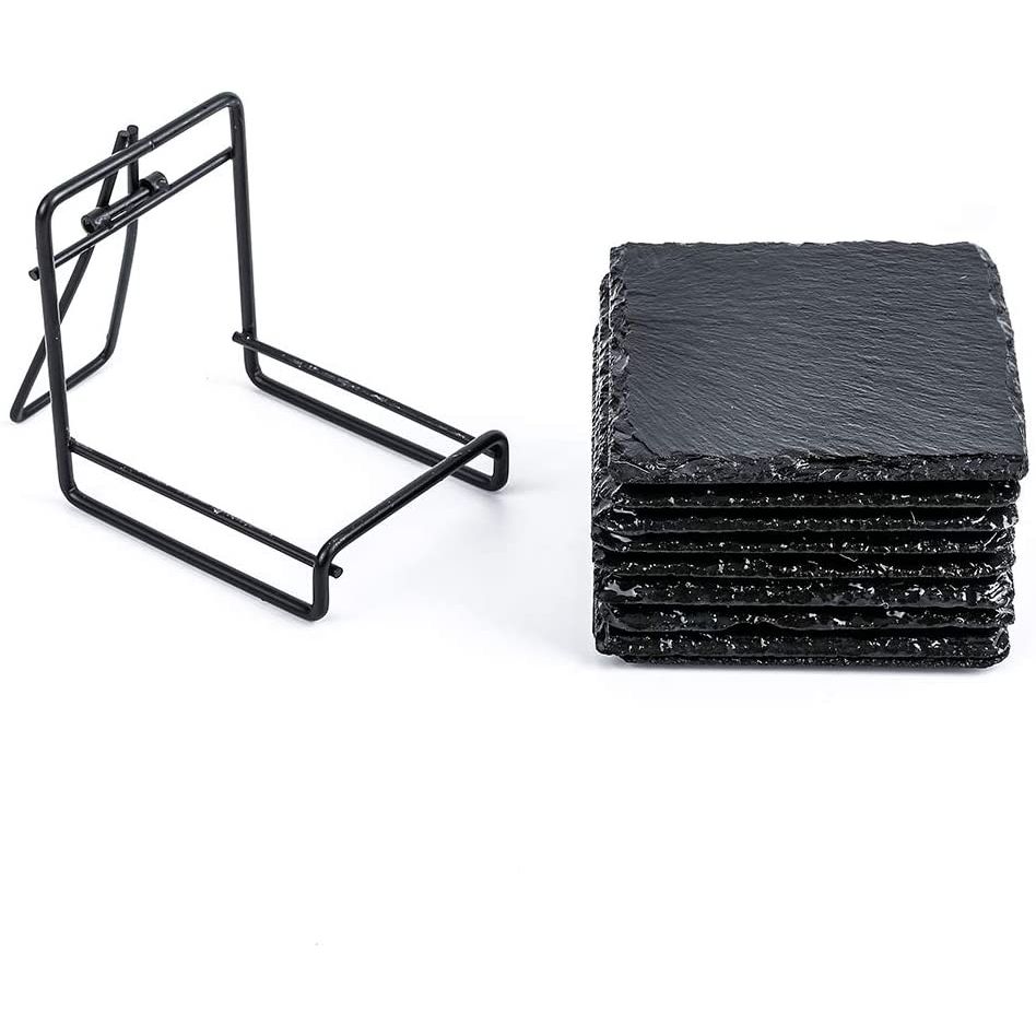 ACKEIVTO 9 Parça Taş Bardak Altlığı (Siyah)