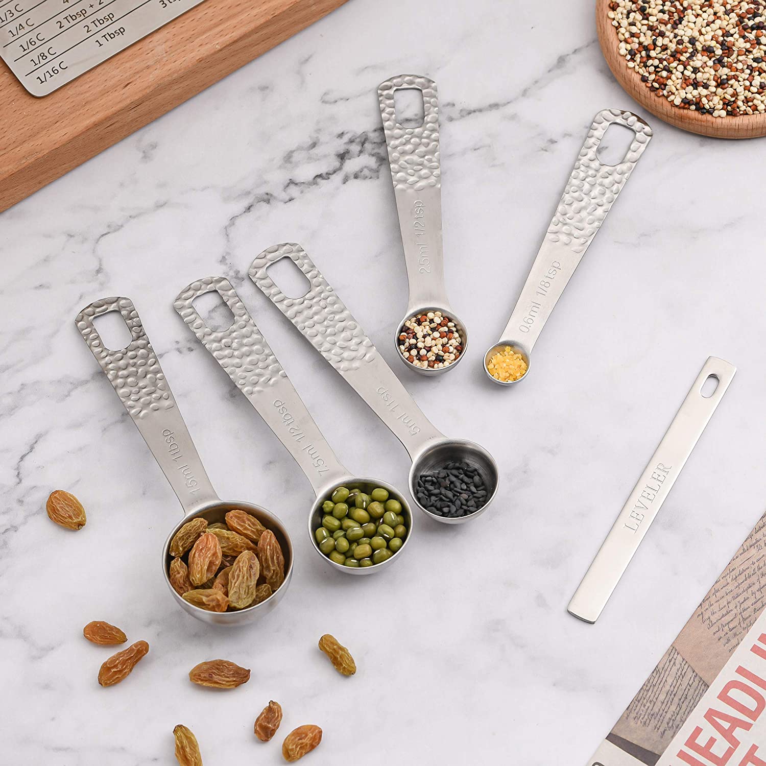 ÖLÇÜM BARDAKLARI: 1 / 8,1 / 4,1 / 3,1 / 2,1 fincan; Ölçü Kaşıkları: 1/8, 1/4, 1/2, 1 çay kaşığı, 1/2, 1 yemek kaşığı Ölçü Malzemesi Dengeleyici ve Manyetik Dönüşüm Tablosu, Halkalar - KAZANMIŞ ÖLÇÜM İŞARETLERİ: Bu setteki her ölçü kabı ve kaşıkları doğru ölçümlere sahiptir ABD cinsinden boyut ve tutamağa açıkça kazınmış Metrik ve sap, çekiçli bir kaymaz tasarıma sahiptir, pişirme veya pişirme için herhangi bir ölçüm hatasını azaltmanıza yardımcı olacak! - KOLAY KULLANIM: Ölçü kapları ve kaşık seti, her kefeye aittir.