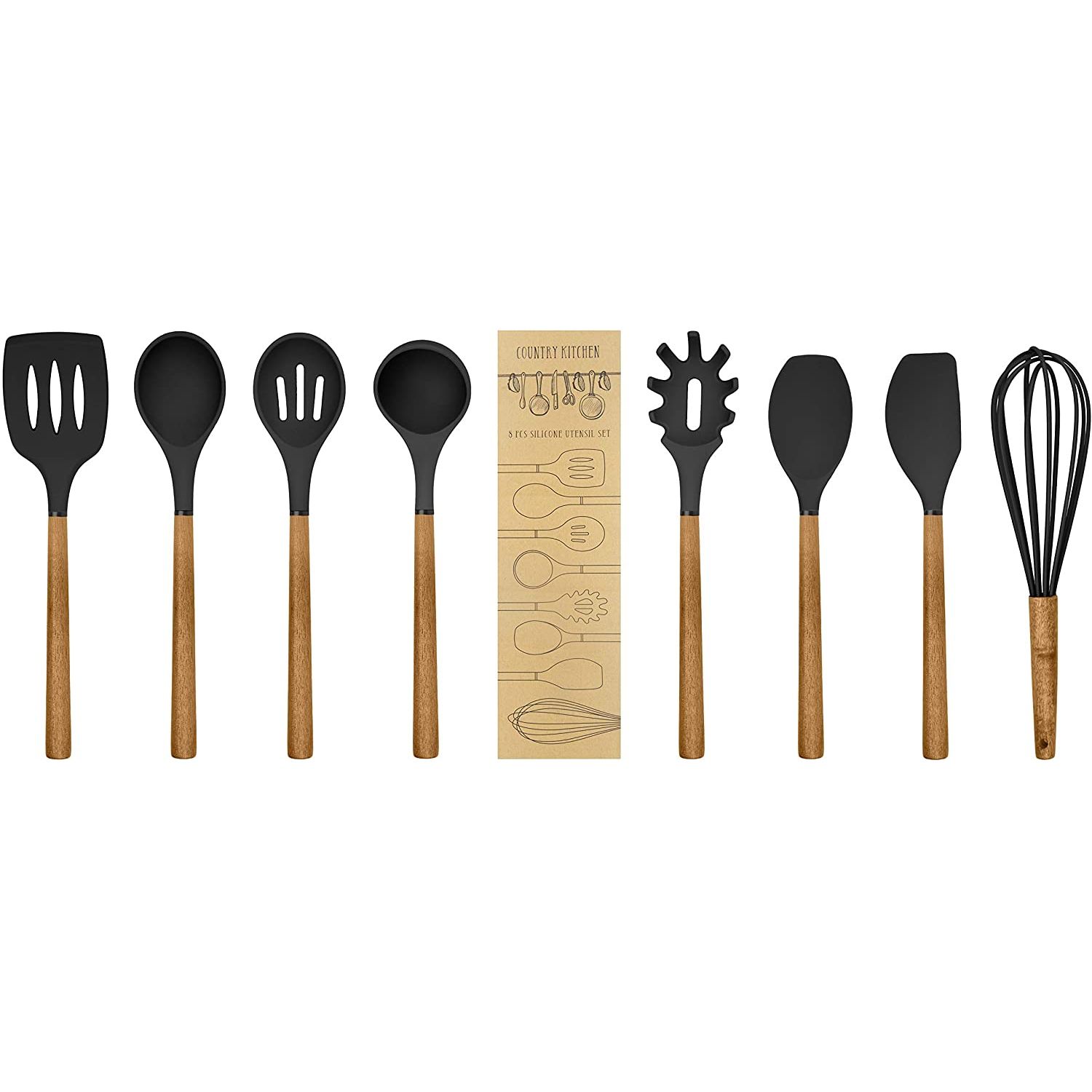 Country Kitchen Silikon Mutfak Gereçleri Seti (8 Parça)(Siyah)