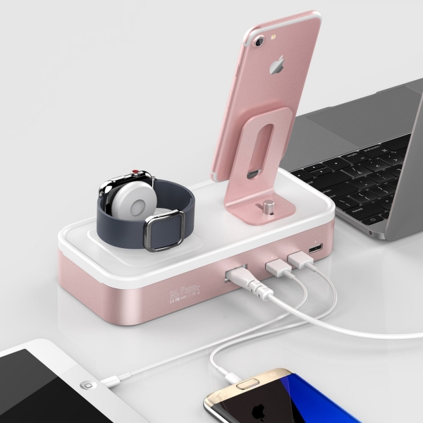 3 bağlantı noktalı USB; iPhone ve Apple Watch'inizi aynı anda 3 ek aygıtla birlikte şarj etmenize olanak tanır ve size tek bir yerde şarj etme konusunda daha fazla kolaylık sunar.