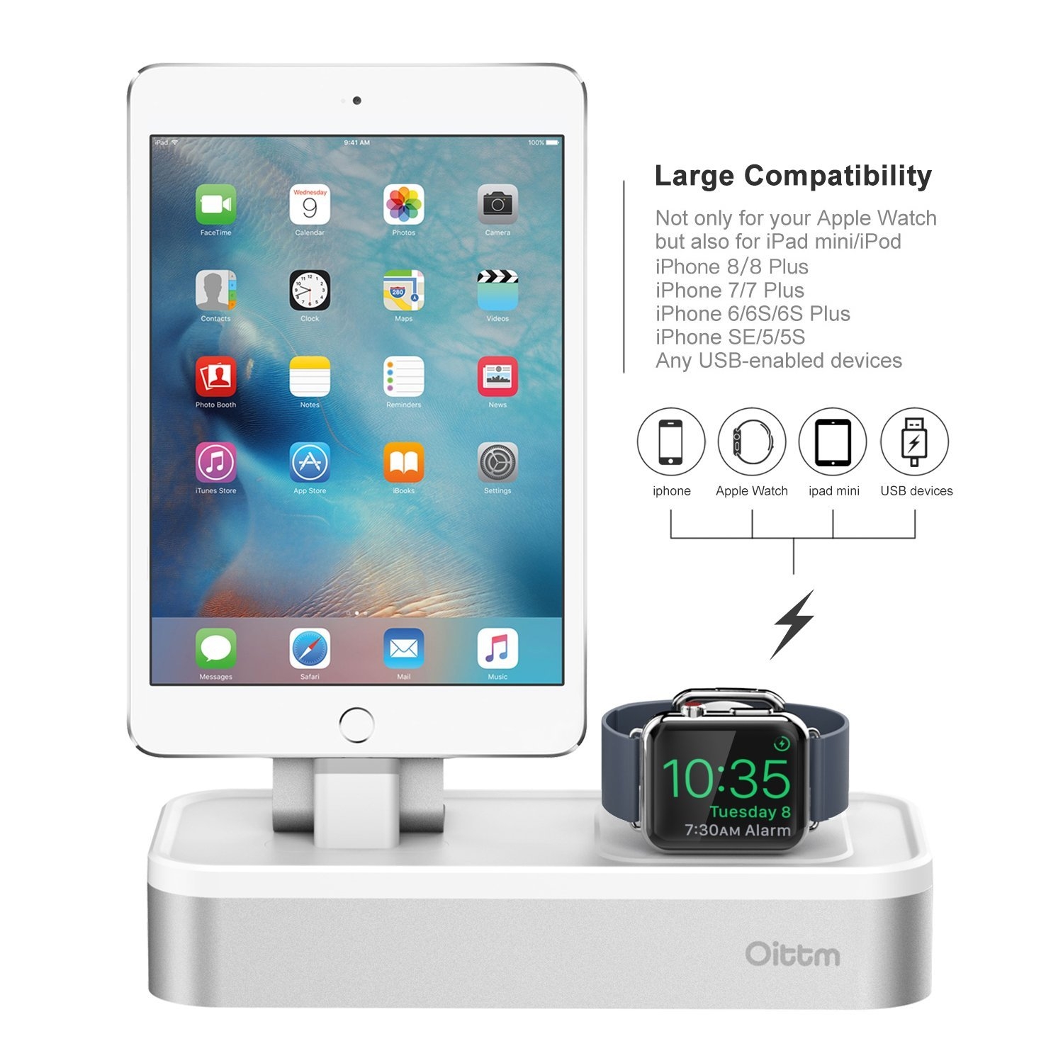 iPhone 8 / 7 Plus / 7, SE / 5S / 5 / 6 Plus / 6S / 6 / 6S Plus, iPad Mini, iPod, Apple Watch serisi 1/2/3, Apple Pencil, Siri Remote, Samsung, Sony ve diğer akıllı telefonlar / USB cihazları vb. ile uyumludur.
