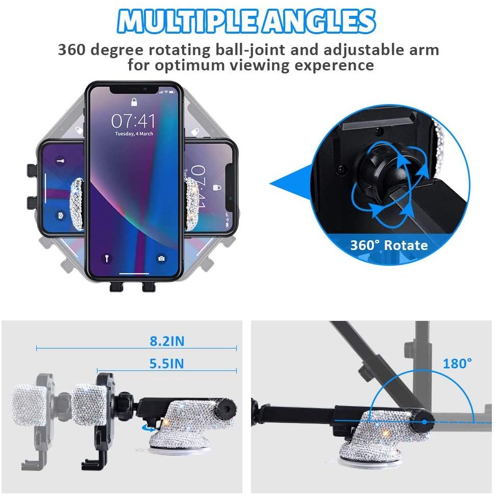 Yükseltilmiş Yeni Nesil: Bu yeni araç telefonu montajı, en son geliştirilmiş vantuz ve havalandırma klipsi ile süper güçlüdür, cep telefonu tutucusu, telefonunuzu gösterge panosunda, ön camda ve havalandırma deliğinde sıkıca tutabilir. İç yapı optimize edilmiştir, ayar doğruluğu ulaşabilir 0.18 inç. Aynı seri ürünleri kullanın, otomobilin iç birliğini ve güzelliğini büyük ölçüde artırabilir, araç şarj cihazı ve usb şarj kablosu seçeneklerimiz var, açıklamaya tıklayabilir ve birlikte başka öğelere ihtiyacınız olup olmadığını kontrol edebilirsiniz. - Favori Görünümünüz İçin Ayarlayın: Bilyalı mafsal size 360 derecelik bir dönüş ve sabitleme sunar; yatay görüş açısında kullanıldığında cihazın ağırlık merkezini korumak için ayarlanabilir ayaklar uzatılabilir; kolun maksimum uzunluğu 6,7 inç'e (17 cm) ulaşabilir. Her neyse, istediğiniz rahat pozisyona ayarlayın. - Tek Dokunuşta Kolay Kullanım: 360 derece dönebilen başlık, telefonunuz portre, manzara veya aradaki herhangi bir açıya yönlendirilebilir. Telefonunuzu saniyeler içinde takmak veya çıkarmak için basit bir dokunuş - Araba sürerken kullanımı çok kolaydır. - Çoğu Akıllı Telefona Uygun: Bu telefon montajı, ayarlanabilir bir ayağa sahiptir ve bu araç montajını 4-6.5 inç'e kadar olan tüm cep telefonları için evrensel hale getirir. iPhone/Samsung Galaxy/ LG/ Pixel ve diğer akıllı telefonlar ile uyumludur. Düşük sıcaklık ortamında, araç sahibi normal işlevi sağlayabilir; dişliler daha düzgün bir şekilde birbirine geçer ve gürültüyü azaltır. Arabanıza, kamyona, taksiye, SUV, kamyona vs. takmaktan çekinmeyin. - Bu ürün %100 saf el yapımı yapay elmaslarla süslenmiştir ve arabanızın içi için çok sevimlidir. Jelin esnek yapısı nedeniyle , monte edildiği yüzeyin tipine bağlı olarak bir miktar renk solması veya kalıntı kalabilir. Lütfen dikkat, büyük olasılıkla deri/vinil panolarda çalışmayacaktır. Paket içeriği: 1 * bling uzatılabilir kol araç montajı, 1 * havalandırma klipsi