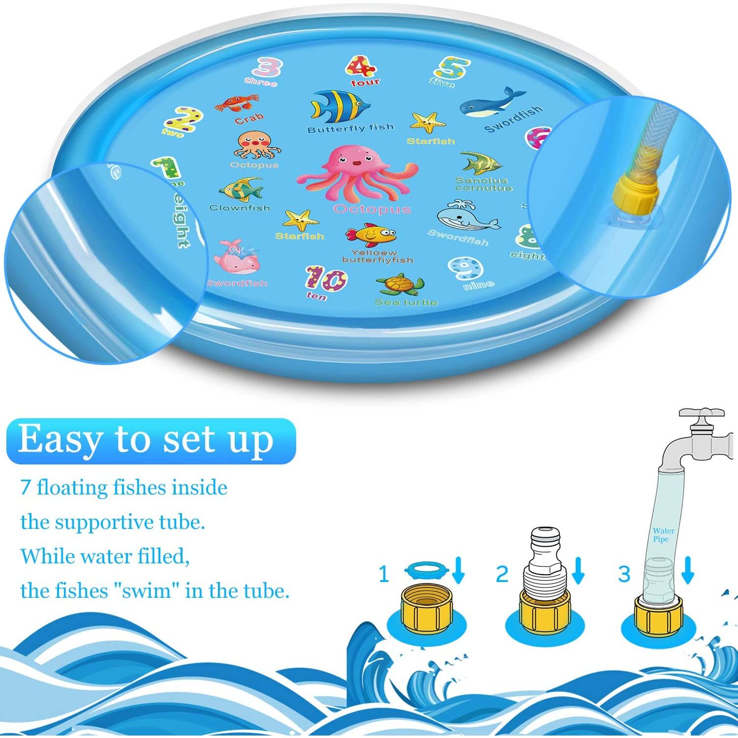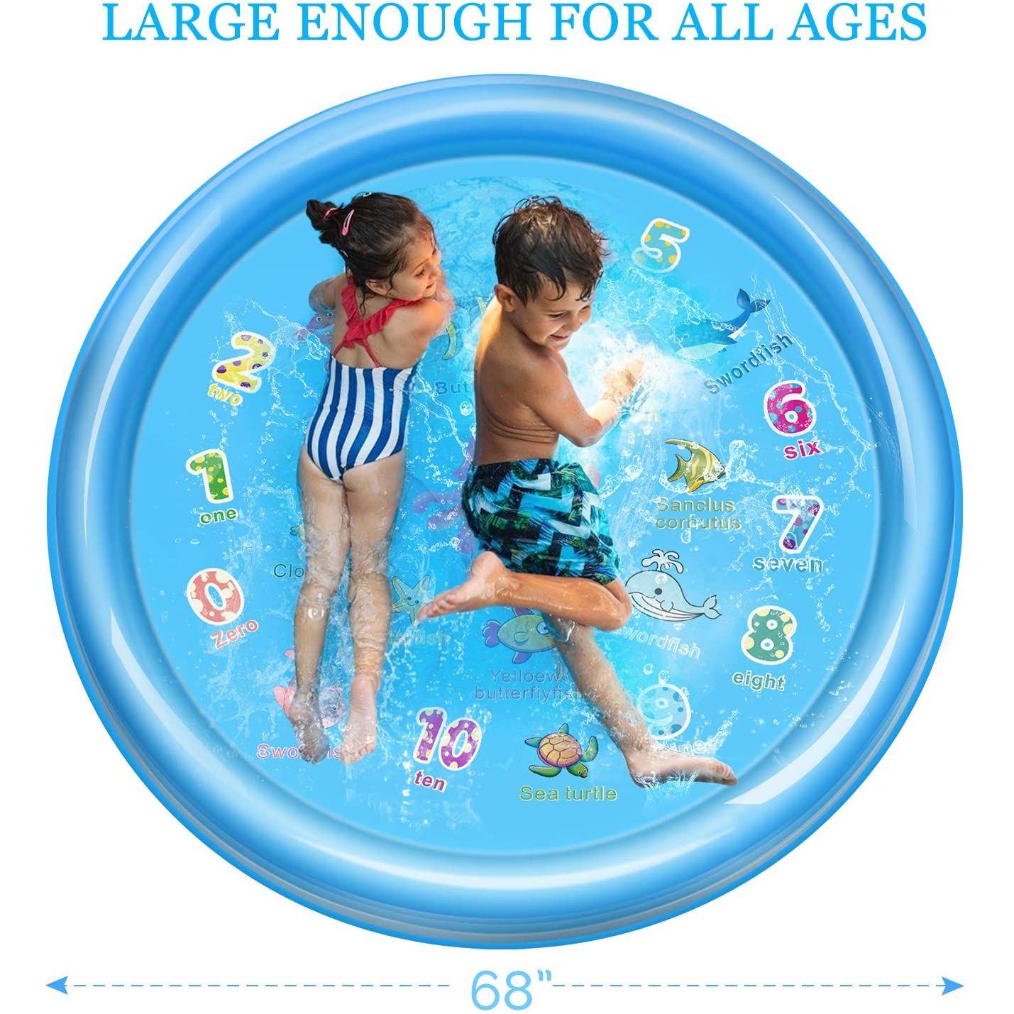 2021 Yeni Çocuklar İçin Sprinkler - Çocuklar için sprinkler pedi, dayanıklı, yumuşak ve kalın BPA içermeyen PVC malzemeden yapılmıştır. Sıçrayan su matını sağlam, yumuşak ve rahat hale getirmek için malzemeyi kalınlaştırın. Her çocuk suyla oynamayı sever. Yaz Partisine Katılalım! - 68" Splash Oyun Minderi - Daha Fazla Oyuncu için Daha Büyük Boyut. MZTDYTL dış oyuncağınız mini yüzme havuzunuz olarak kullanılabilir. Dıştaki halkada suyun geldiği yerde küçük delikler vardır. 2-4 çocuğunuzun kendileriyle oynamasına olanak tanır.