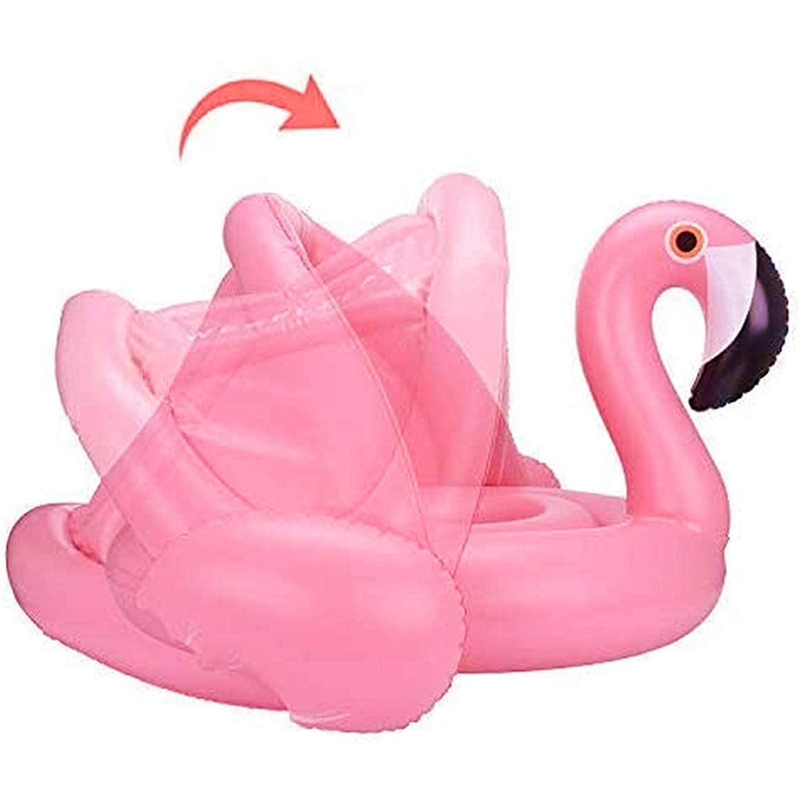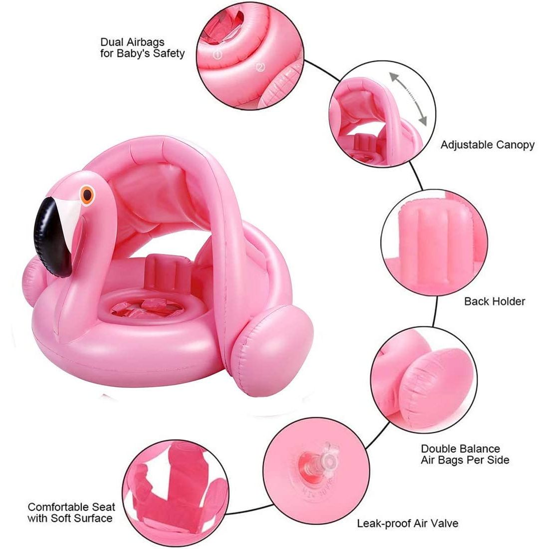 Parlak Renk ve Canlı Flamingo Görünümlü Pembe Flamingo Bebek Yüzme Halkaları Oyuncak. - Merkezdeki Bacak Açıklıkları Çocuğunuzun Yüzerken Rahat Bir Şekilde Oturmasını Sağlar. Yüzmeyi öğrenmek isteyen veya sadece havuzda su sıçramasının keyfini çıkarmak isteyen çocuklar için idealdir. - Bu şamandıra, çocuğunuzun narin cildini güneşten korumak için bir güneşlik ile birlikte gelir. Ve tente çıkarılabilir ve taşıması kolaydır. Ayrıca gece veya bulutlu gündüz oynarken çıkarmanıza olanak tanır.