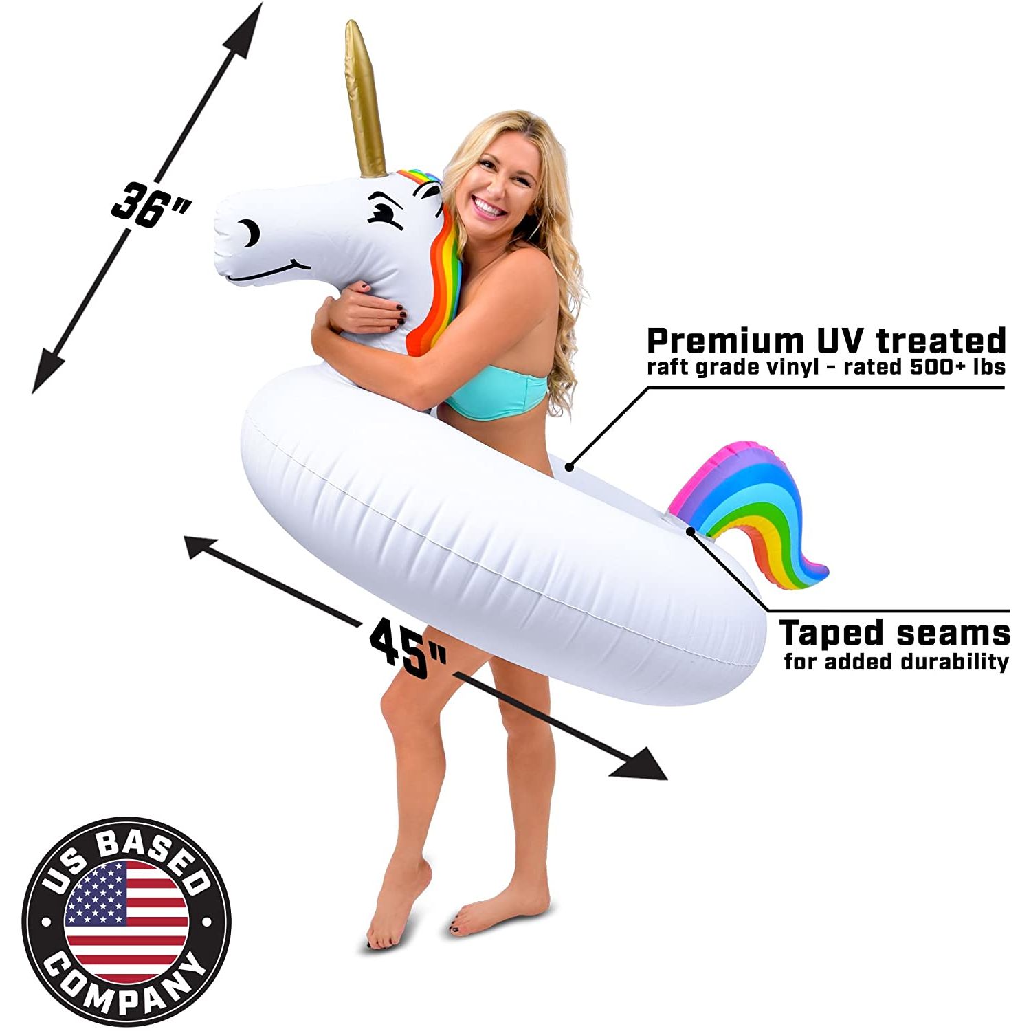 GÜNEŞTE EĞLENCE: Eğlenceli ve uygun fiyatlı GoFloats Unicorn Parti Tüpü ile yazın büyüsünün tadını çıkarın - BÜYÜK BOYUT: Tüp 45 inç genişliğinde ve 3 fit yüksekliğinde harika bir değerdir - her boyutta yüzücü için ideal ve 500+ puan Pound - PREMIUM MALZEMELER: Havuzda, plajda, gölde veya nehirde bir gün geçirebilmeniz için rakiplerinden %25 daha kalın, UV ile işlenmiş sal sınıfı vinilden yapılmıştır.