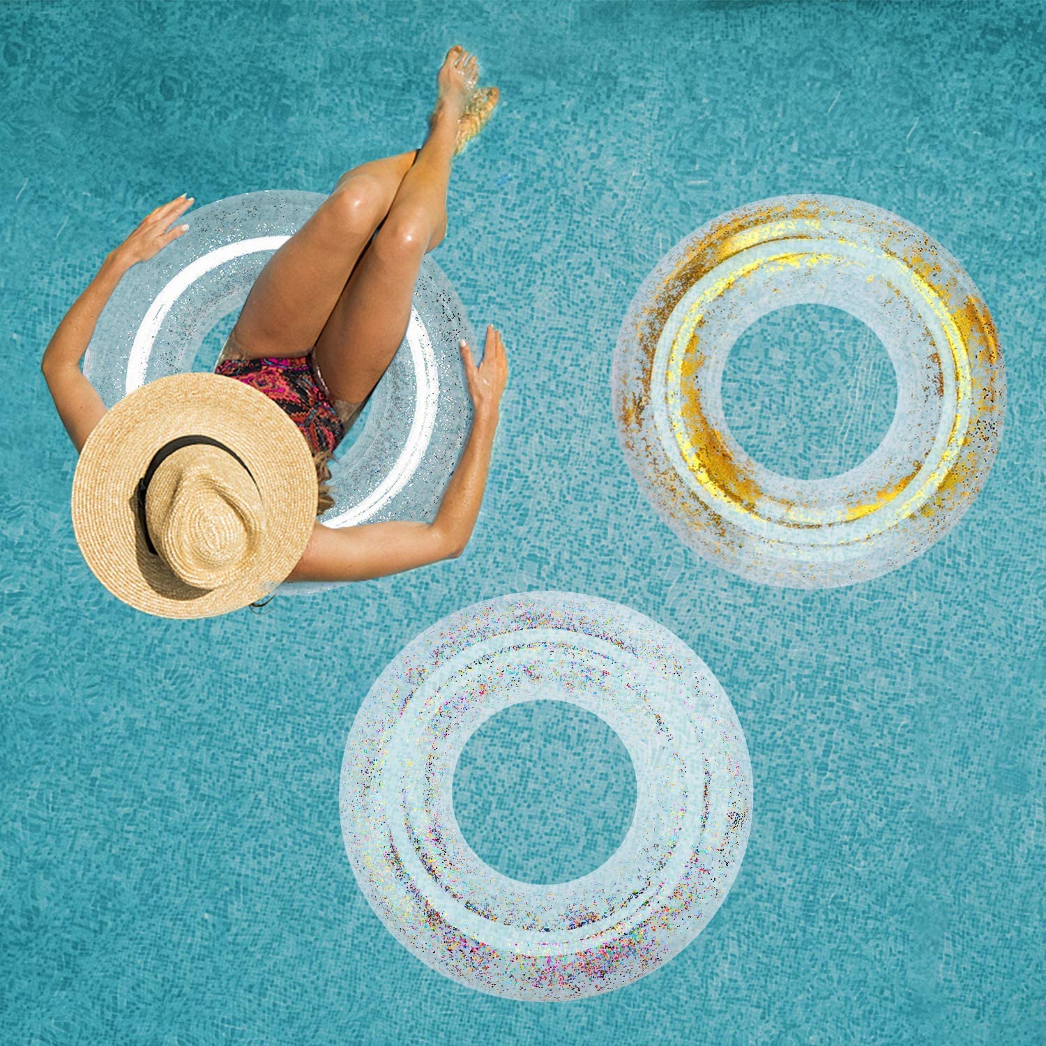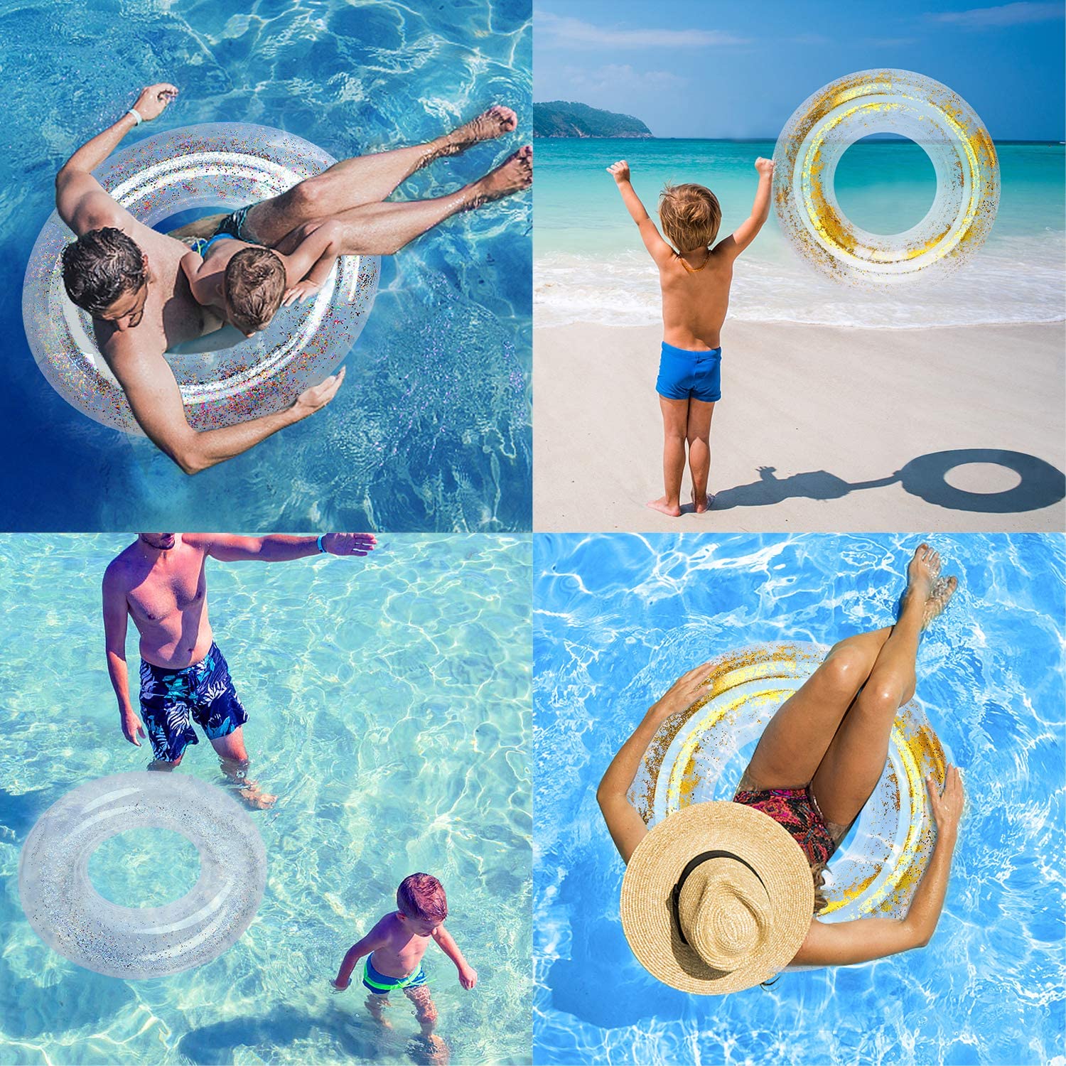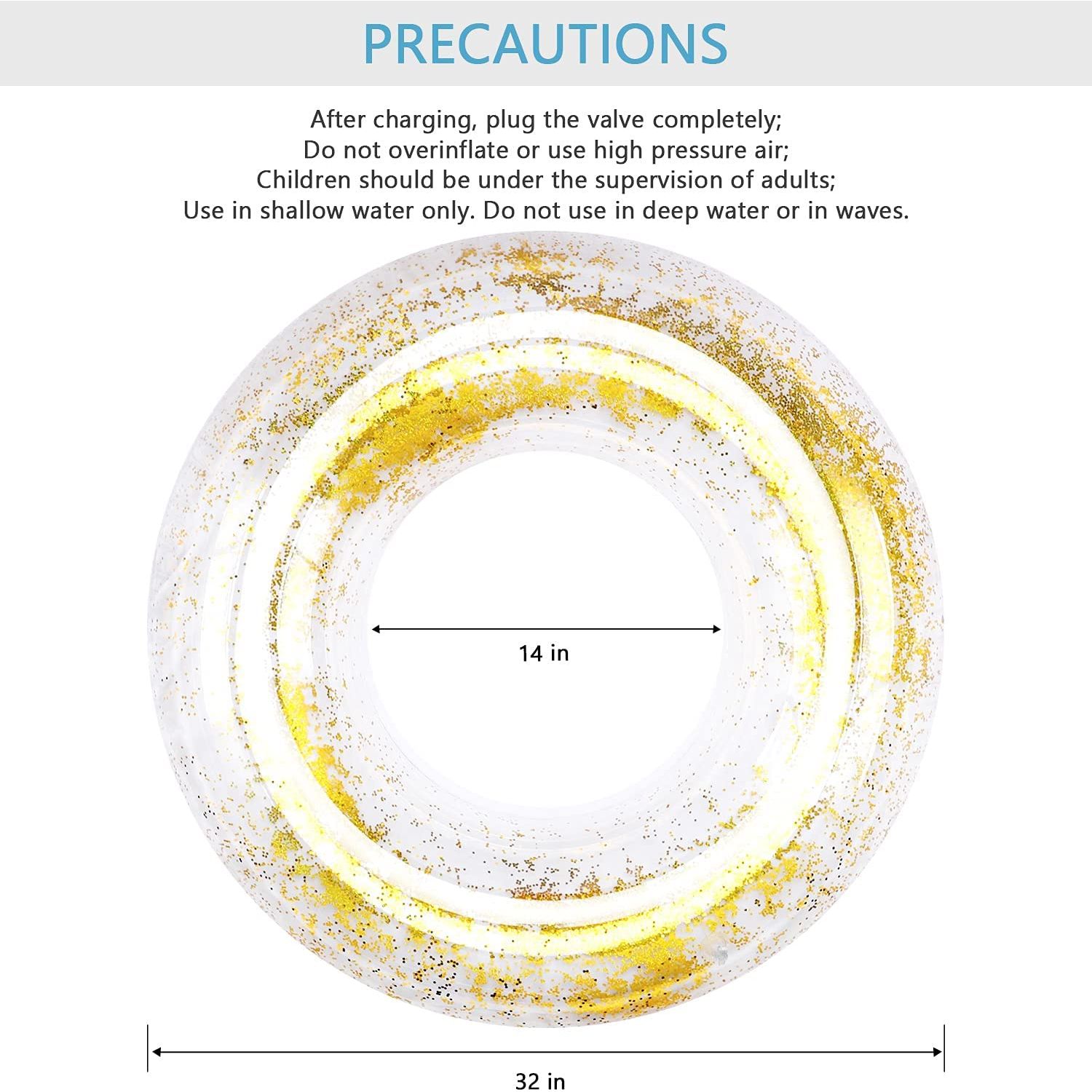 PREMIUM MALZEME: Yüzme simidi güvenli ve çevre dostu PVC malzemelerden yapılmıştır. Ekstrüzyon ve yırtılmaya karşı güçlü bir dirence sahiptir - İDEAL İÇ ALAN: Havuz şamandıra borusunun iç çapı 14'tür, yetişkinlerin ve çocukların onu kullanırken rahat tutabilecekleri kadar büyüktür - ÇEŞİTLİ KULLANIMLAR: Pırıl pırıl pırıltılı yüzme simidi olarak uygundur. plaj, göl, parti, tatil ve dekorasyon için eğlenceli yüzme havuzu oyuncağı