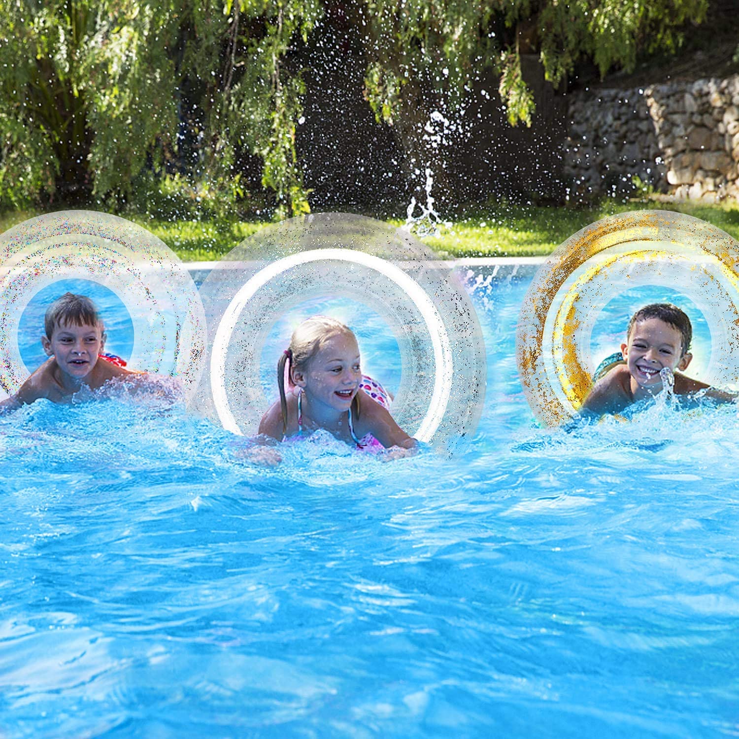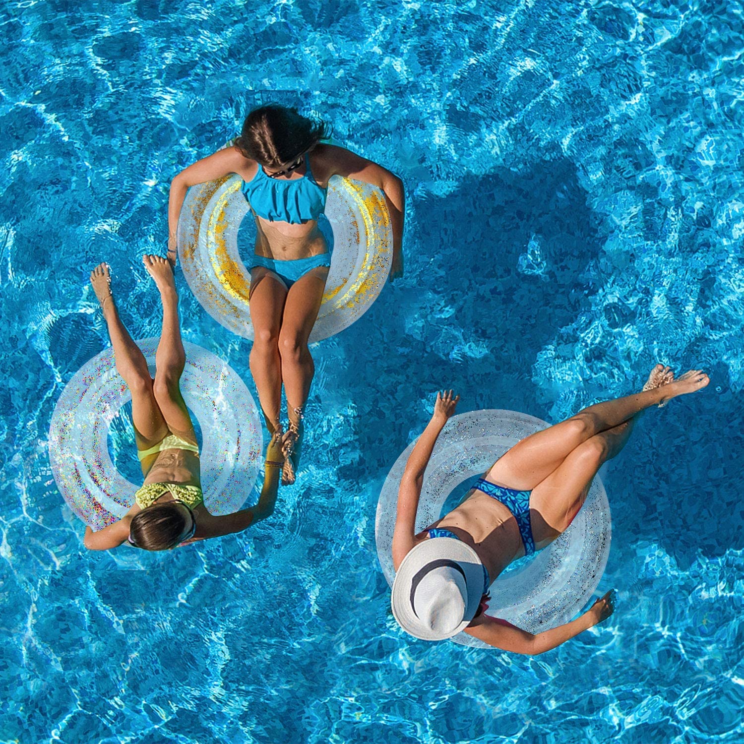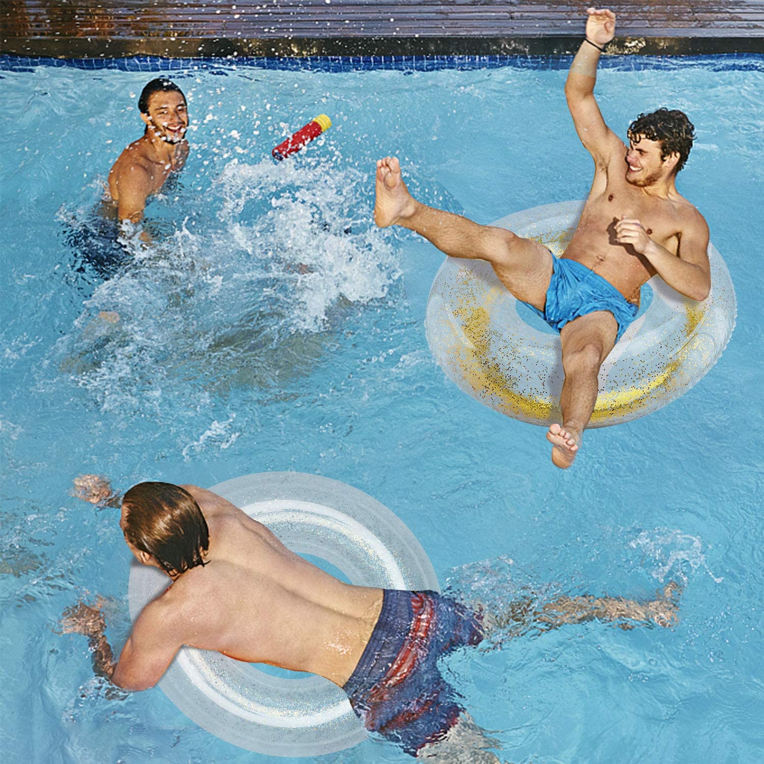 PREMIUM MALZEME: Yüzme simidi güvenli ve çevre dostu PVC malzemelerden yapılmıştır. Ekstrüzyon ve yırtılmaya karşı güçlü bir dirence sahiptir - İDEAL İÇ ALAN: Havuz şamandıra borusunun iç çapı 14'tür, yetişkinlerin ve çocukların onu kullanırken rahat tutabilecekleri kadar büyüktür - ÇEŞİTLİ KULLANIMLAR: Pırıl pırıl pırıltılı yüzme simidi olarak uygundur. plaj, göl, parti, tatil ve dekorasyon için eğlenceli yüzme havuzu oyuncağı