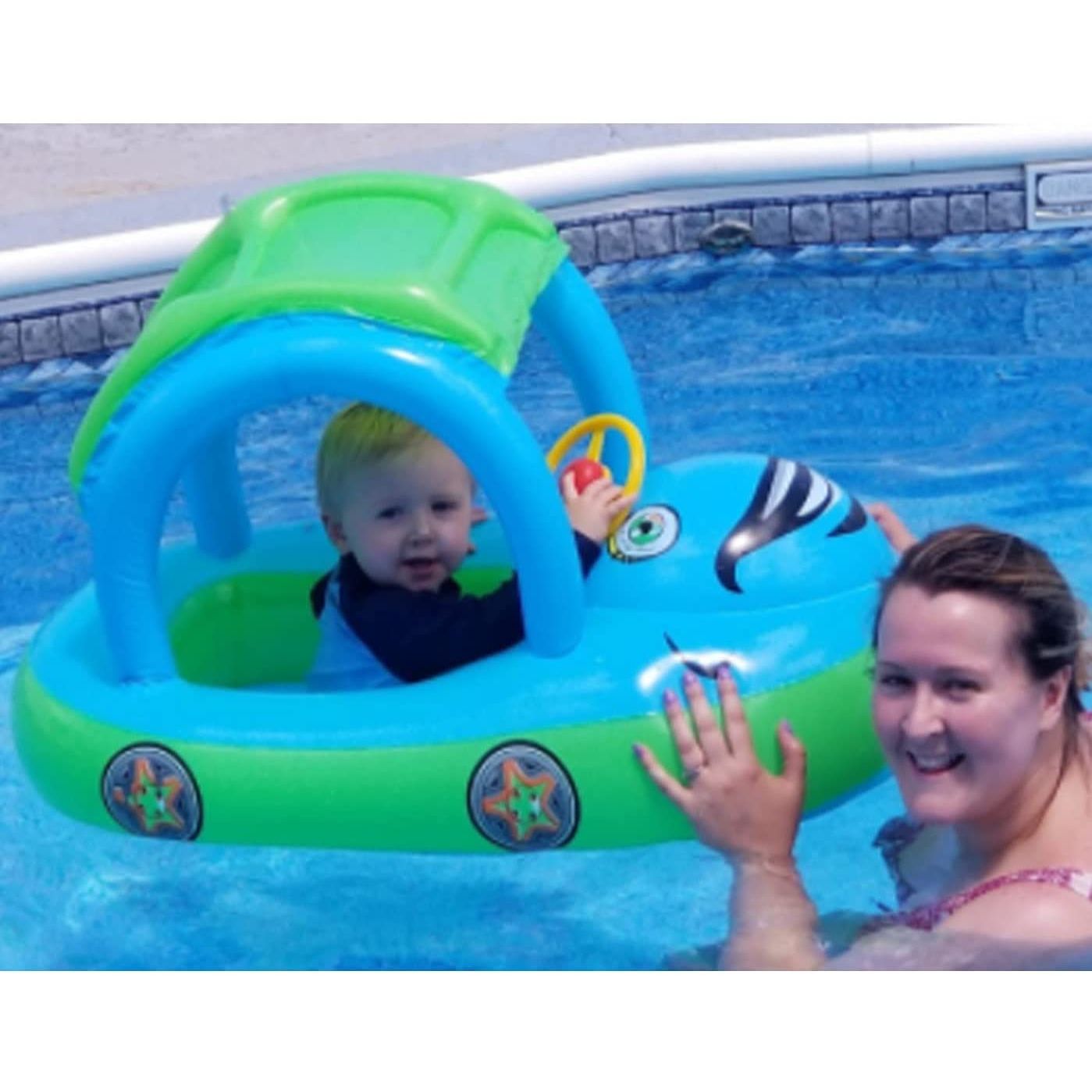 Güneşlik Gölgelik Havuz Şamandıraları: Bebek havuz şamandıralarının güneşlik tentesi bebeğinizi güneşten ve ultraviyole ışınlarından korur. Bebek Havuz Şamandıraları da benzer bir otomobil tasarımına sahiptir ve patinaj yapan şirin bir direksiyonu ve ortasında bip sesi çıkaran sevimli kornası ile bebeğinizin havuzda daha çok eğlenmesini sağlar. - Şişirme Tekne Boyutu ve Malzemesi: yaklaşık 21*32*23 inç; İç Koltuk Boyutu: yaklaşık 9.5*13.5 inç; Bacak Deliği Boyutu: yaklaşık 2.8*4.7 inç. Yük taşıyan 0-44 lb. bebek havuzu şişme
