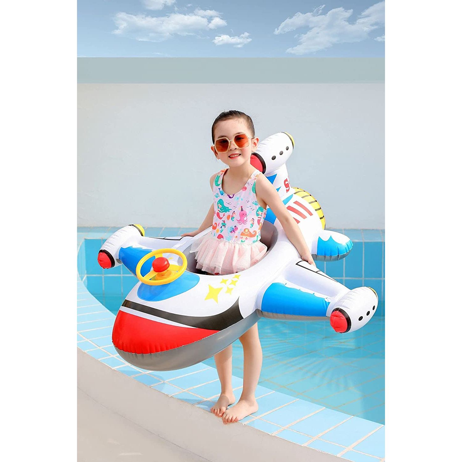 GÜZEL UÇAK TASARIM FLOAT - Esnek boynuzlu sevimli uçak uçak tarzı havuz şamandırası, yüzerken eğlenen çocukları harekete geçirebilir, bu ilginç oyuncak yüzücü şamandırasına aşık olacaklar, unisex çocuklar için öneriliyor küçük çocuklar çocuk kız erkek 1-4 yaş arası. AĞIRLIK LİMİTİ: 55 lbs'ye kadar çocuğu tutabilir. Çevre dostu kalın PVC malzemeden üretilmiştir, toksik değildir, kullanımı güvenlidir. Pürüzsüz kısım, cildinizin sıcak güneşte sürtünmesini önler.