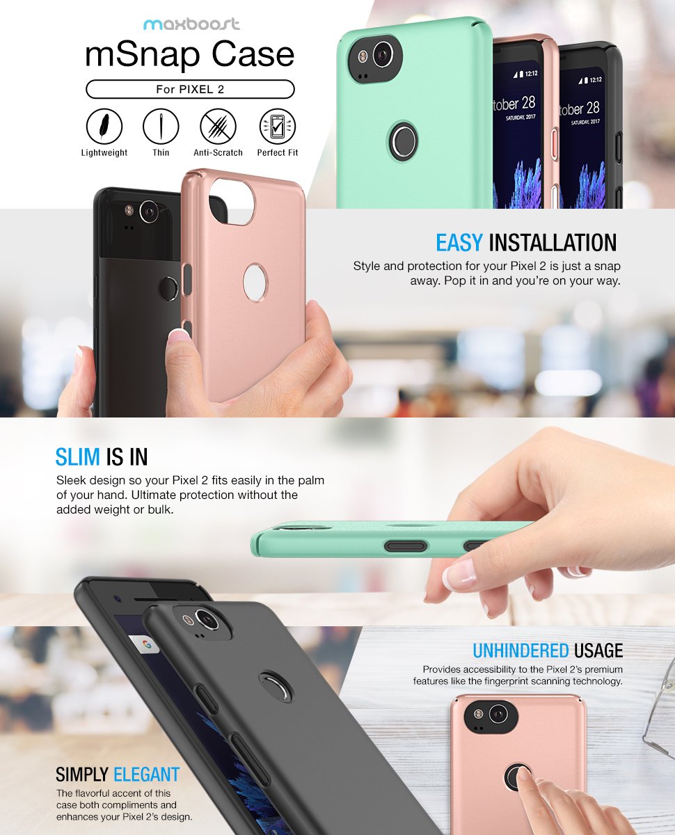 Maxboost Google Pixel 2 mSnap Serisi Kılıf ürünü Google Pixel 2 ile tam uyumludur.