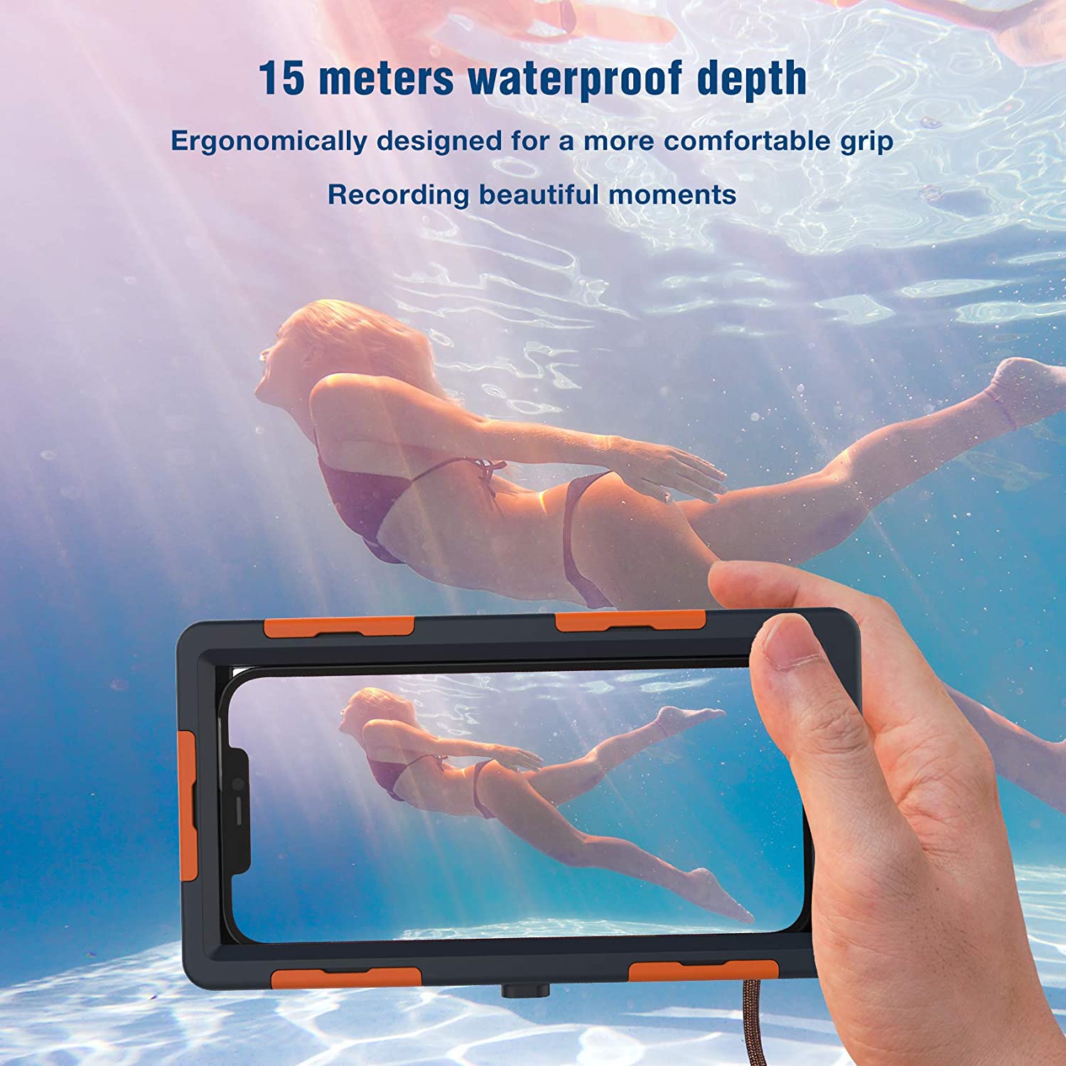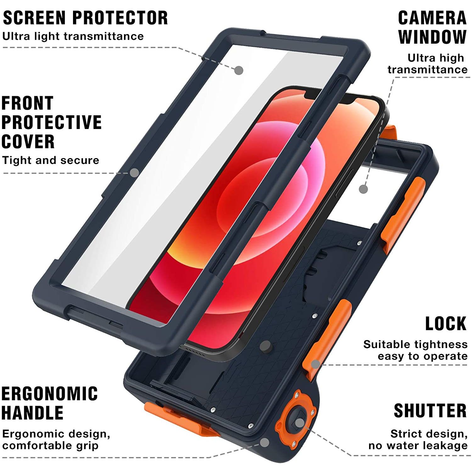 Tek tuşla işlem. Deklanşöre sahiptir. Tüm su altı maceralarınızı doğrudan "deklanşöre" basarak yakalayın. Telefonu doğru yere koyun, kapağı kapatın ve tokayı kapatın.