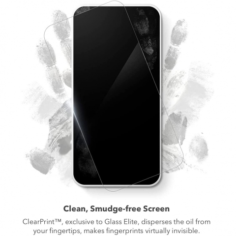 Glass Elite'e özel devrim niteliğinde bir yüzey işlemi olan ClearPrint, parmak yağı uçlarınızdan dağıtarak neredeyse görünmez hale getirir.