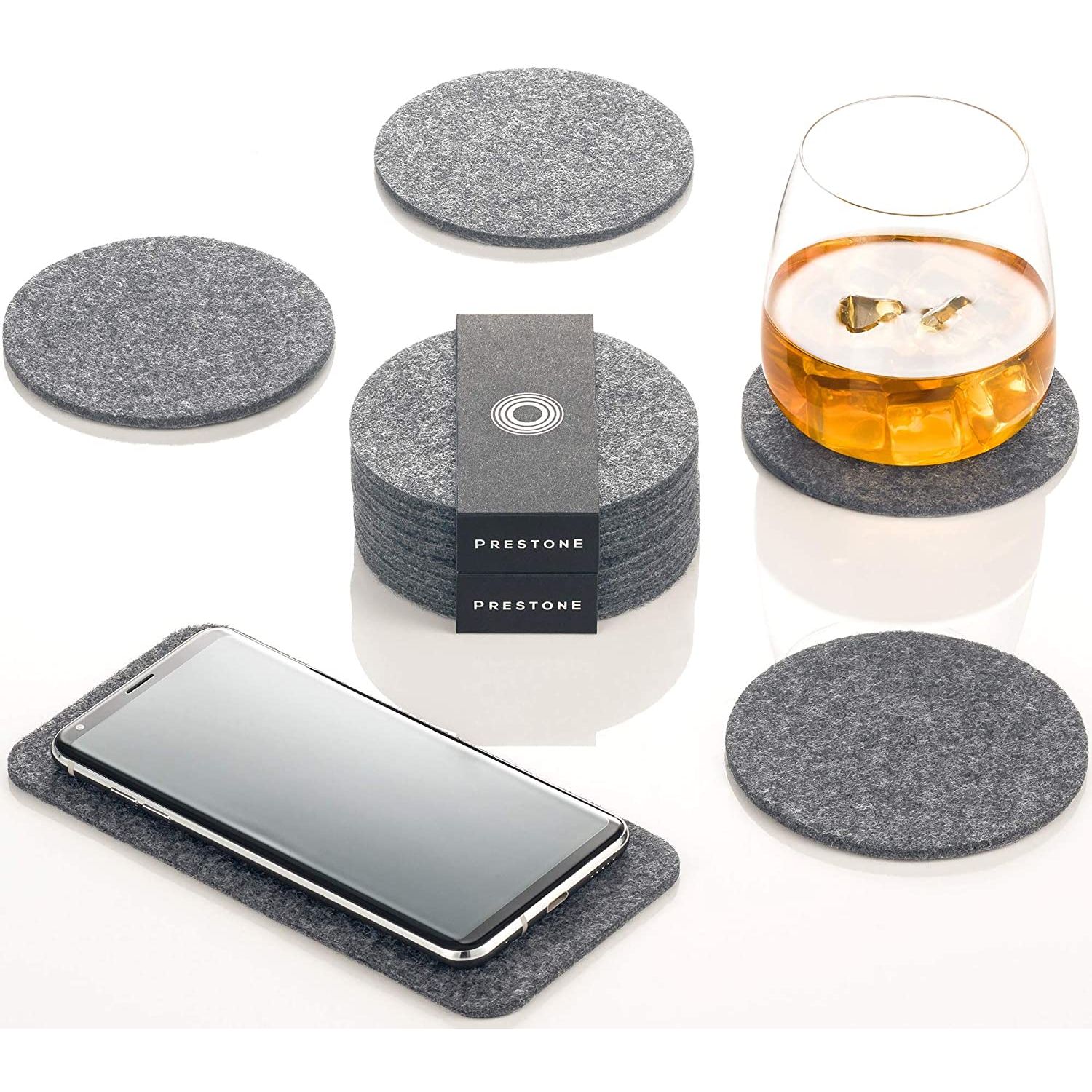 En Yüksek Kalite - Emici keçe bardak altlıklarımız üstün kaliteli keçeden yapılmıştır. Bu 10 cm'lik  içecek altlığı seti, sıvıları mantar veya taş altlıklardan çok daha iyi emer. Yumuşak ve hafiftirler. Cam kupa, bardak ve şişe için mükemmeldir. Alt kısımdaki su geçirmez kaplama, mobilyalarınızı nemden korumaya yardımcı olacaktır. Bardaklarımız kolayca temizlenebilir. Ayrıca soğuk suda makinede yıkayabilirsiniz. - Harika Hediye Fikri - Mükemmel yeni eve taşınma hediyesi. Premium hediye kutusu 8 adet yuvarlak bardak altlığı içerir.