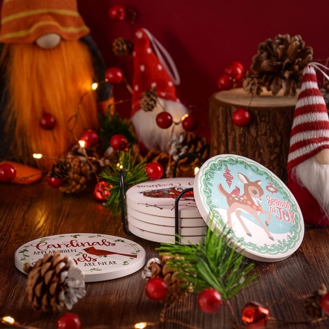 İçecek Bardakları Seramik bardak altlıklarımızın yüzeyinde emici seramik, alt kısmında ise yumuşak mantar kullanılmıştır. Çıkarmak veya saklamak için uygun mini boyut, yer kaplamaz. Her biri 10cm  çapındadır ve 6 adet bardak altlığı ve 1 metal tutucu ile birlikte gelir. Aileniz veya arkadaşlarınız için mükemmel hediye seçenekleri. - Mantarlı Bardak Altlıkları İçecek altlıkları, mobilya veya ahşap masanın çizilmesini etkili bir şekilde önleyebilen mantardan yapılmıştır. Kupanızı önlemek için mükemmel kaymazlık işlevine sahiptir.