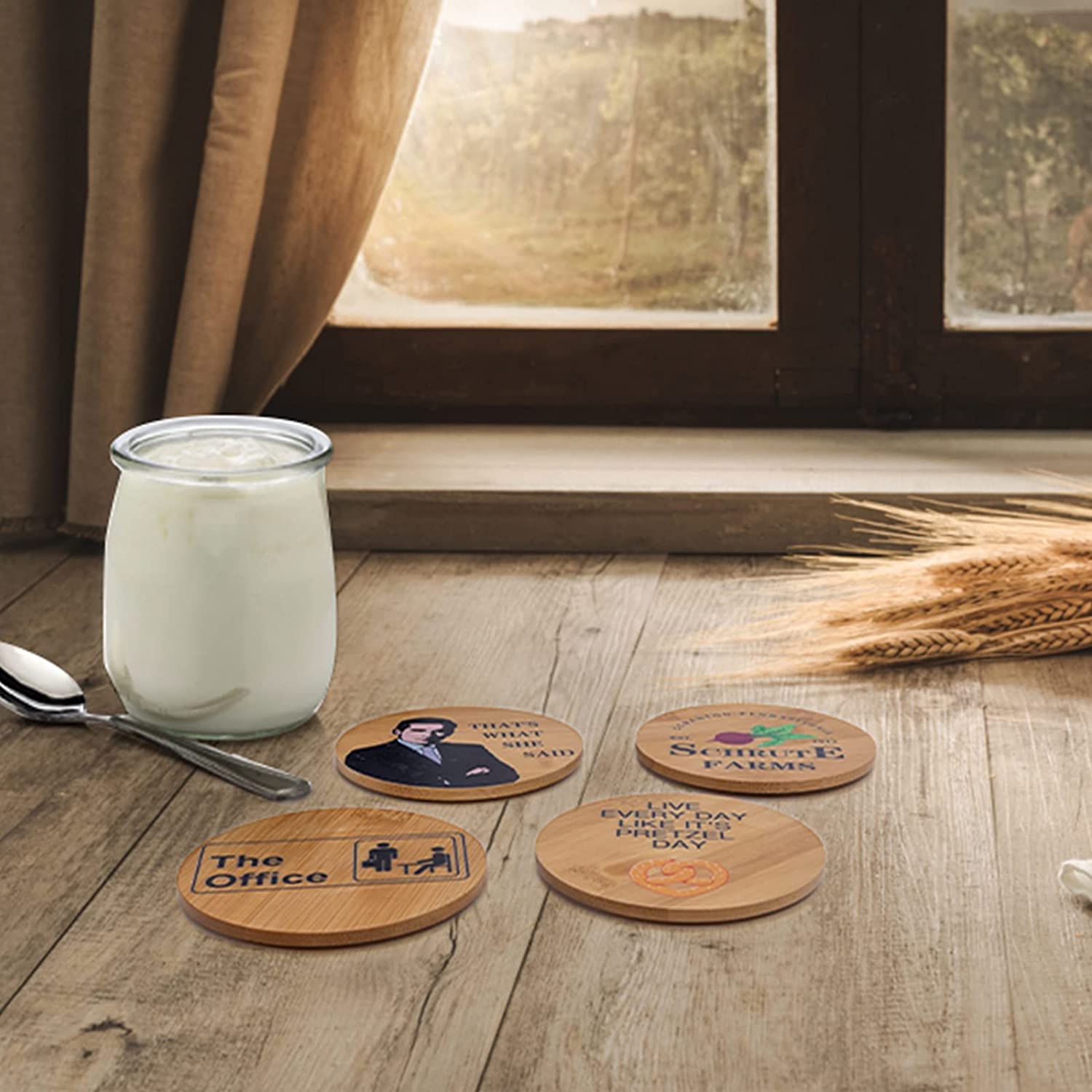 Ofis Hayranları Sevecek - Bu Office Dunder Miffllin'den ilham alan bambu bardak altlığı seti, hayatınızdaki hemen hemen her durum ve Ofis hayranı veya İç Geek için harika bir hediye fikri. - Eşsiz Tasarım - Set, Dwight Schrute, Dunder Mifflin, Schrute Farms ve ofis TV şovundan diğer ünlü desenleri içeren 6 tasarımın tümünü içerir. - Mükemmel Dekor - Evinizdeki herhangi bir masa veya mobilyayı çizilmelere karşı korumak için ekleyebilirsiniz. Çoğu bardak, kupa veya şişe için uygundur. - Üstün Kaliteli Malzemeler - Ölçü:10 cm