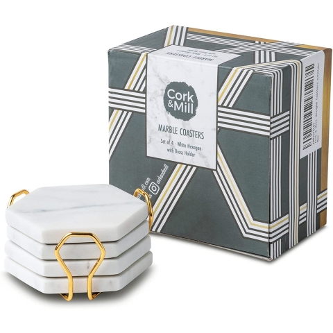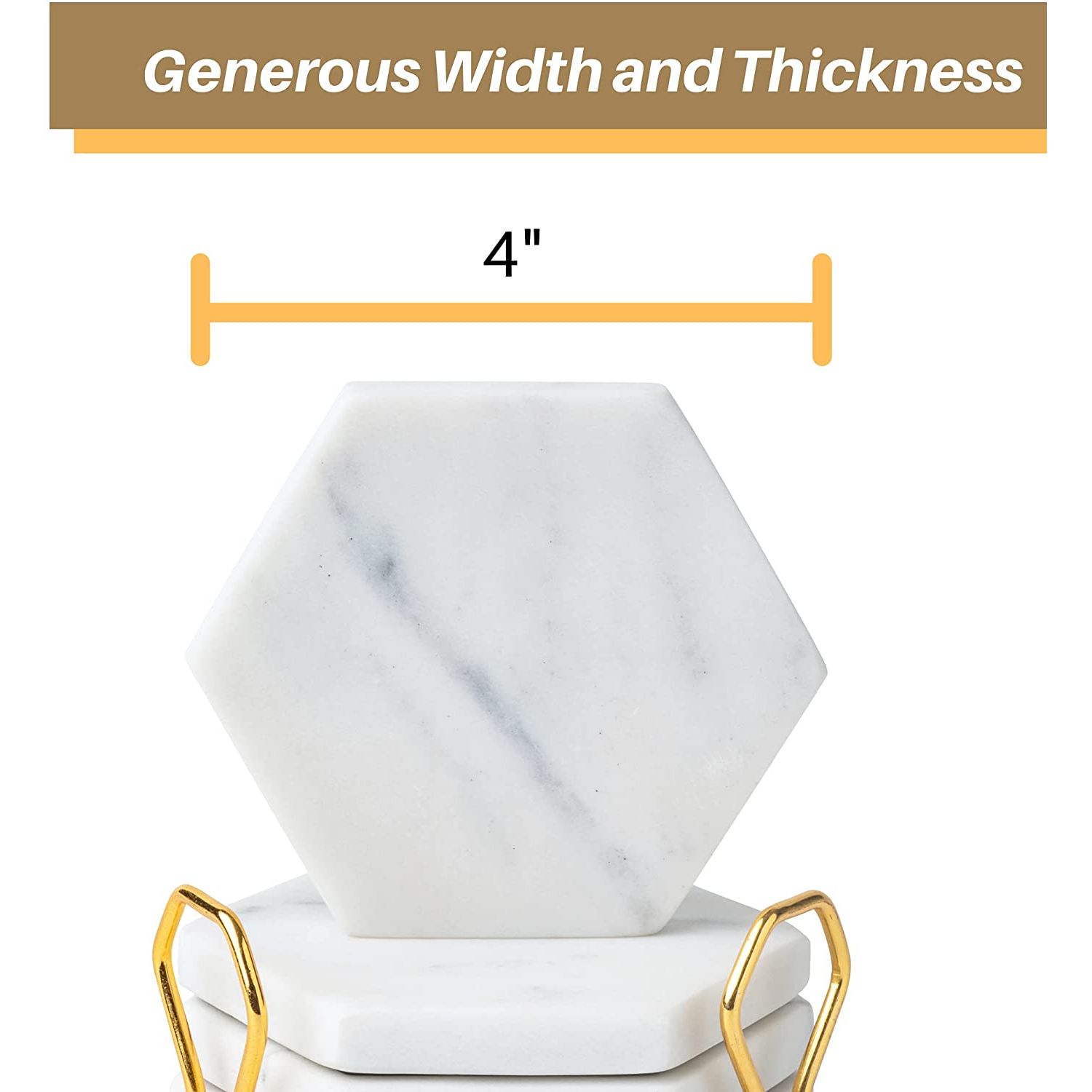Zarif Bir Vurgu - İçecekler için mermer altıgen bardak altlıklarımız, muhteşem modern bir dokunuş için mermer dekorun klasik sadeliğini pirinç tutucuyla birleştirir. Gelecek yıllarda içecekler için bu güzel taş bardak altlıkları için iltifatlar kazanacaksınız. - Gerçek Masif Mermerden Yapılmıştır - Suni seramik ve deri bardak altlıklarının aksine, bu beyaz mermer bardak altlıkları, bir parçadan diğerine değişen farklı renklere ve damarlara sahiptir, bu nedenle içecek altlığı setlerimizin her birinin türünün tek örneği olduğunu gerçekten söyleyebiliriz. - 10 cm.