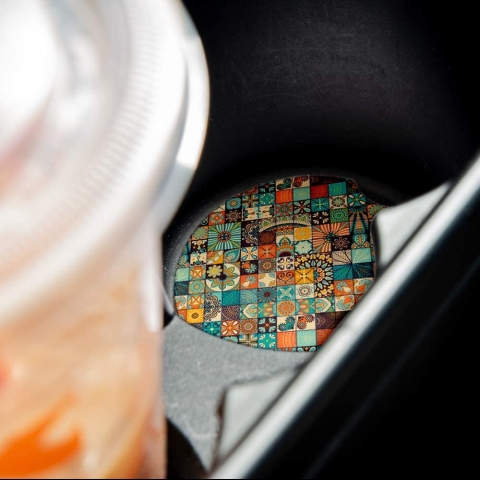 YATIRIMINIZI KORUYUN: İçecekler için güzel araba altlıklarımız 6.5 cm boyundadır. Bardak tutucu bardak altlıklarımız, bardak tutucunuzdaki çizikleri önlemek için koruyucu bir kauçuk desteğe sahiptir. Polyester ve kauçuktan yapılmıştır, kaymayan düşük profilli bir görünüm sağlar. Araba için mükemmel aksesuarlar. - CANLI: Sürecimiz, yüksek ısı ve yüksek basınç kullanarak tasarımı malzemede kaynaştırır ve araba altlıklarına malzemenin ömrü boyunca dayanan canlı bir renk verir. - NS