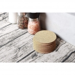 CORK COASTERS: 24'lü yuvarlak mantar bardak altlığı; ten rengi herhangi bir mutfağa, bara veya restorana uyar - BARWARE: Dövülebilir, esnek ve barware kurulumunuza uyacak şekilde herhangi bir şekil ve boyutta kesilmesi kolaydır - BOYUTLAR: Her mantar karo 10 cm 'dir. - KOLAY KULLANIM: Altlıkların temizlenmesi kolaydır; sadece yumuşak nemli bir bezle silin - İLE GELİR: 24 mantar altlığı alacaksınız.