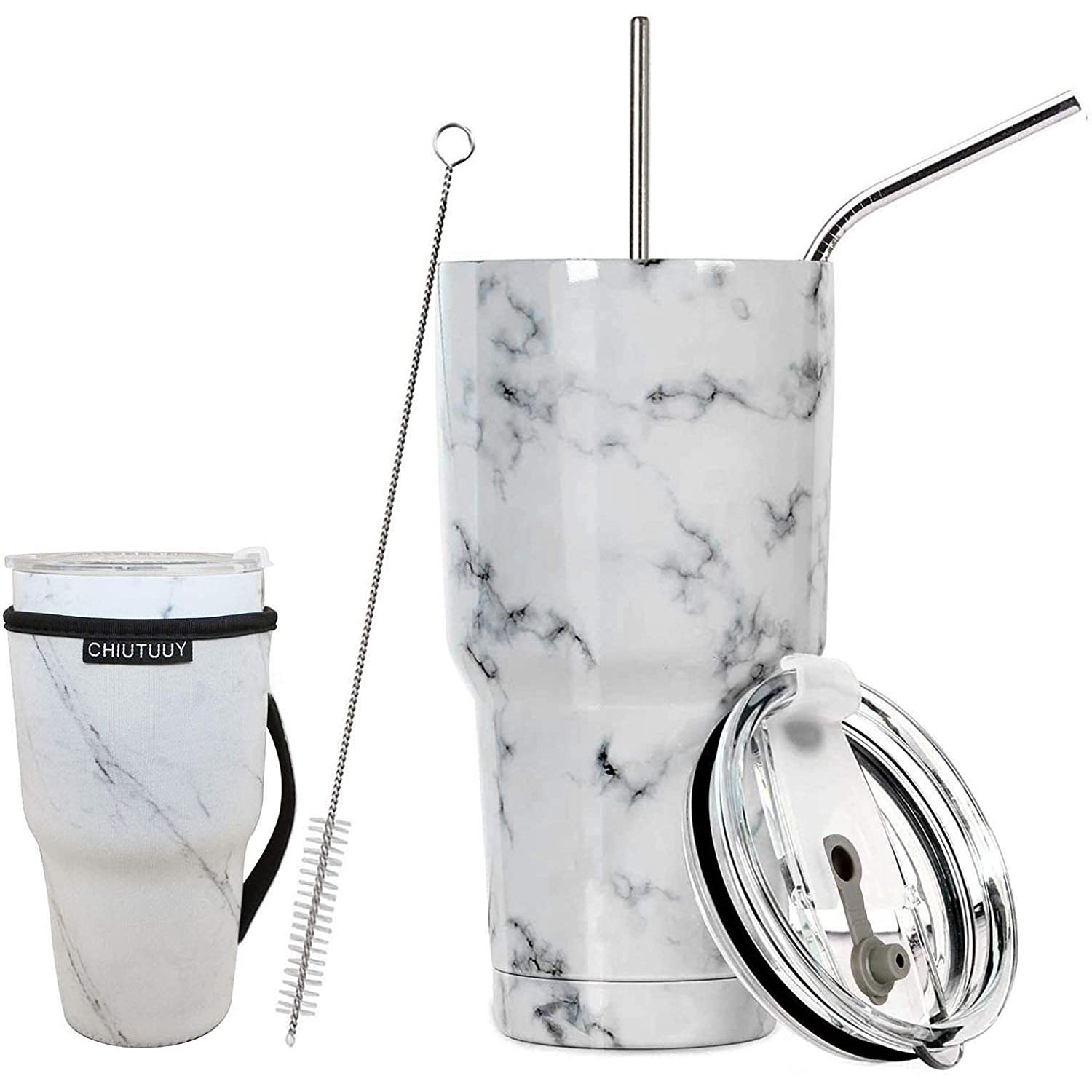 Paket İçeriği30 oz mermer beyaz bardak, iki payet, mermer baskı kulp kılıfı, kapak ve temizleme fırçası. - Yalıtımlı Bardak18/8 gıda sınıfı paslanmaz çelikten yapılmış çift duvarlı vakum teknolojisi, içecekleri 6 saatten fazla sıcak veya soğuk tutar. - BPA Kapak ve Paslanmaz Çelik ÇubuklarEkstra sızdırmaz ve kapak kapağı maksimum su sıçramasına karşı dayanıklı ve güvenli kullanım sağlar. Daha rahat bir yudum için üstte içme deliği ve pipet deliği. - Yeniden Kullanılabilir Bardak KılıfNeopren, yumuşak, hafif.