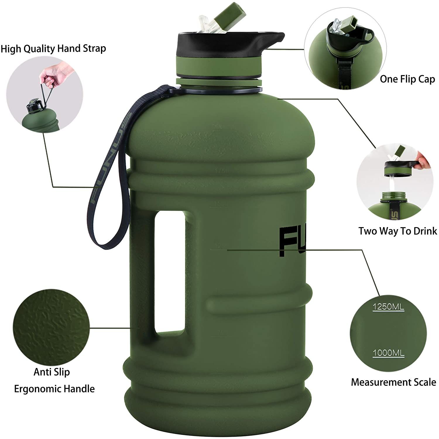 [Daha Güçlü ve Dayanıklı] Eskisinden daha güçlü ve daha dayanıklı ama yine de her zamanki gibi hafif. %100 BPA içermeyen gıda sınıfı plastik malzeme. - [2.2L Kapasite ve Geniş Ağız Tasarımı] 2.2L büyük kapasiteli su sürahisi, egzersizlerden sonra nem kaybınızı yenileyebilir. Geniş ağız, ihtiyaçlarınızı karşılamak için buz küpleri veya meyveler eklemenizi sağlar. - [%100 Sızdırmazlık Garantisi] Silikon contalı kapak, patentli tasarım.